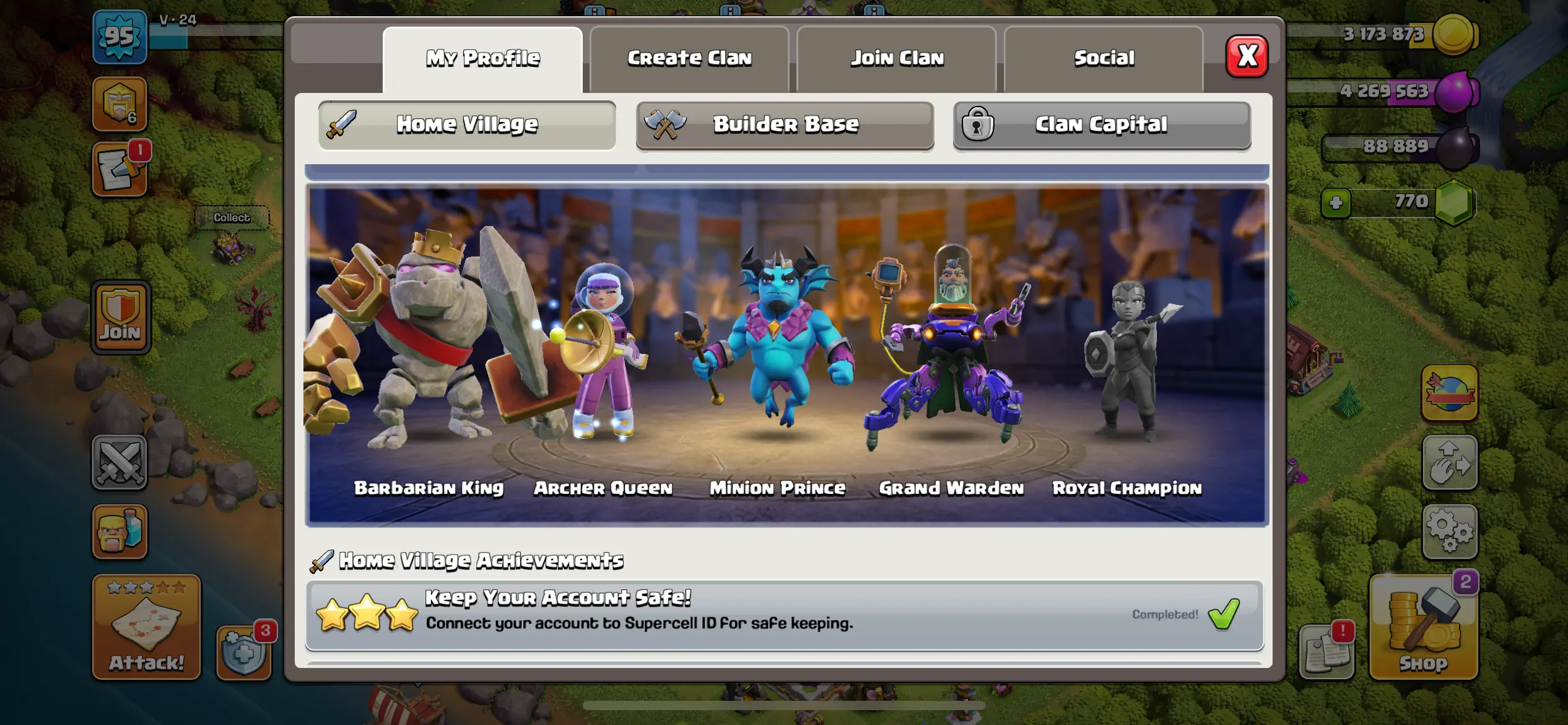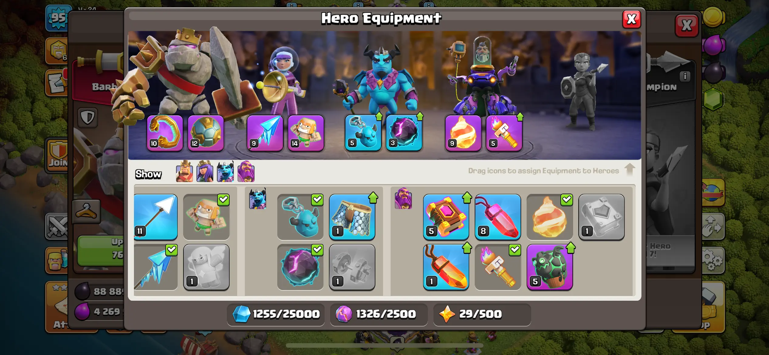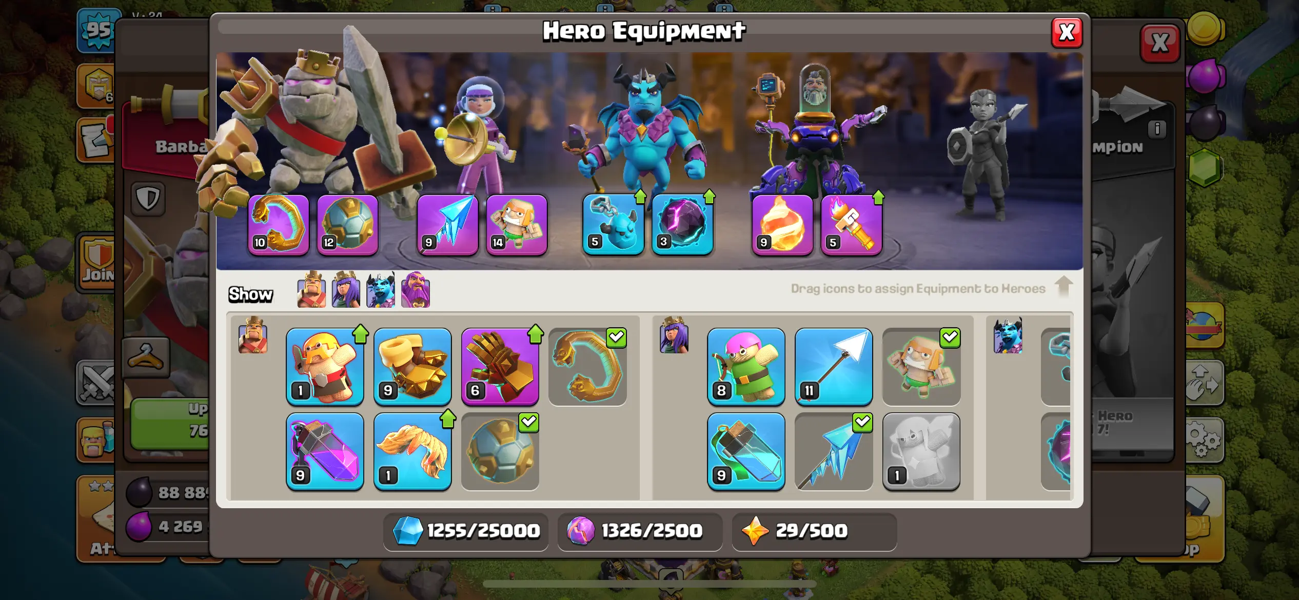 SEMI MAX TH 11🔥XP 95🔥4 SKINS HEROES 46-48-30-18🔥8 EPIC EQUIPMENT🔥GEMS 770🔥#2