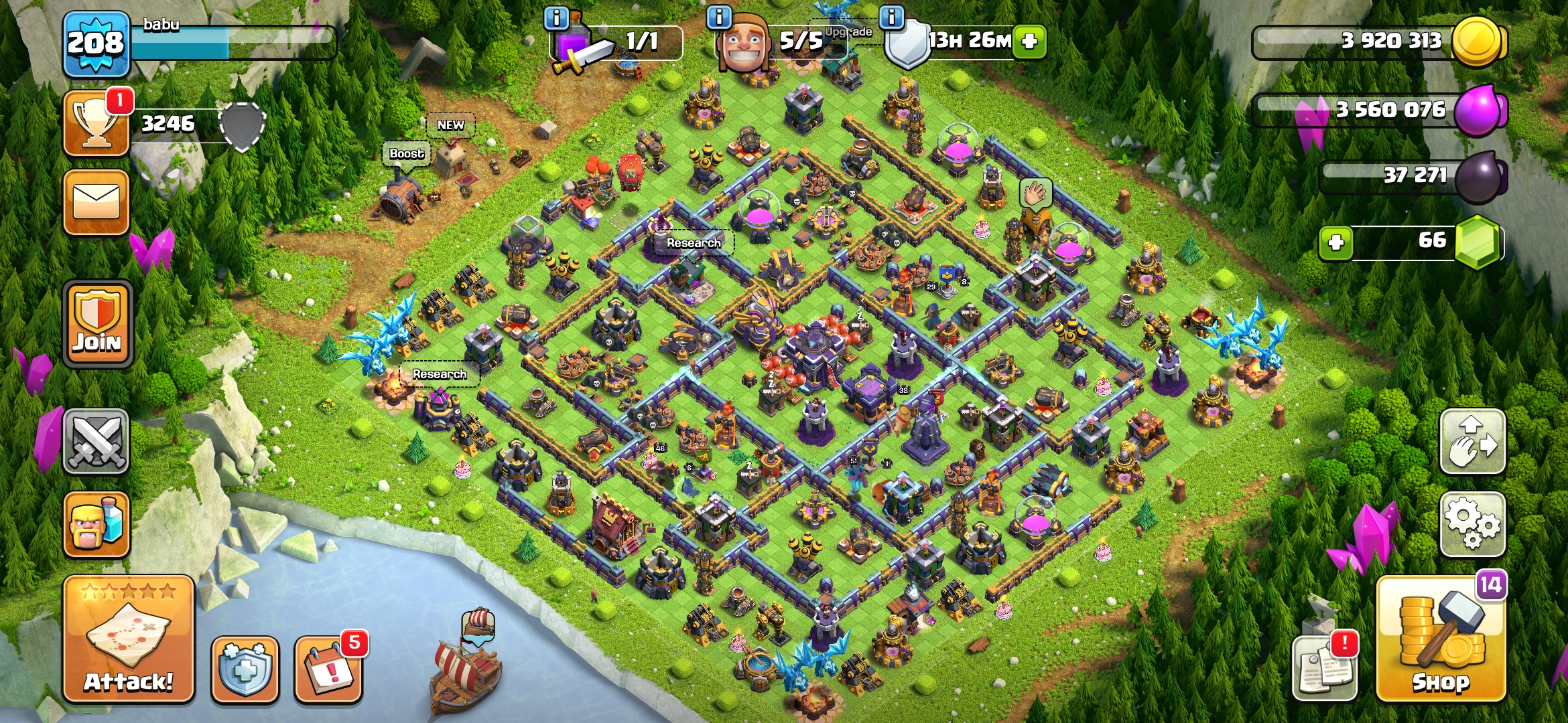 Th 15 best xp 208 account ■ hero 40/46/51/21/29 ■ nc free ■ high defense max ■ troops max account