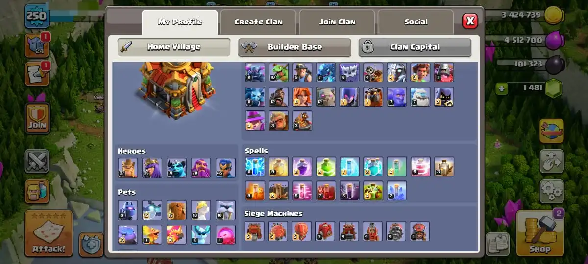 TH 16 DEFD MAX [ 20 SKINS ]🔥FREE CHANGE NAME🔥HEROES 87-95-71-70-45🔥MAGIC ITEMS READY🔥MAGIC & JUNGLE SCENERY🔥FULL ACCESS ACCOUNT🔥