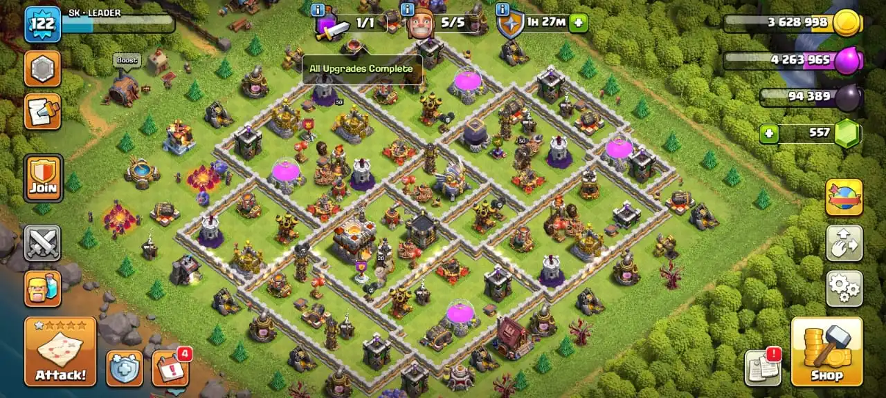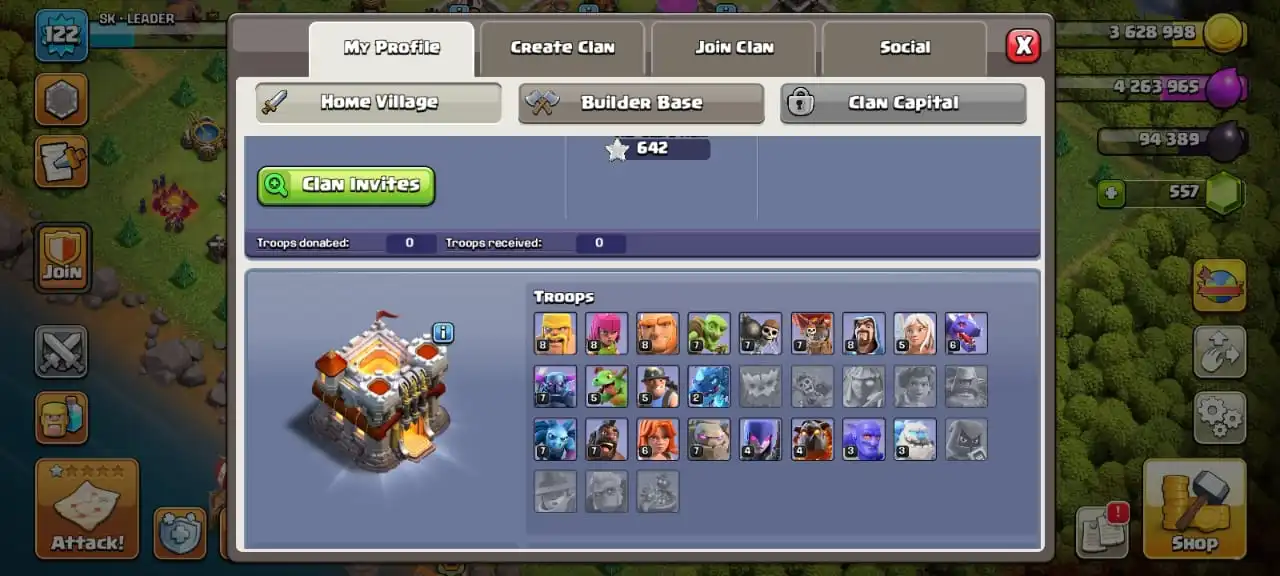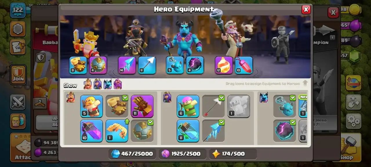 Town hall 11 all max🔥☠️4 epic equipment✅war arena scenery and 5 heroes skin
