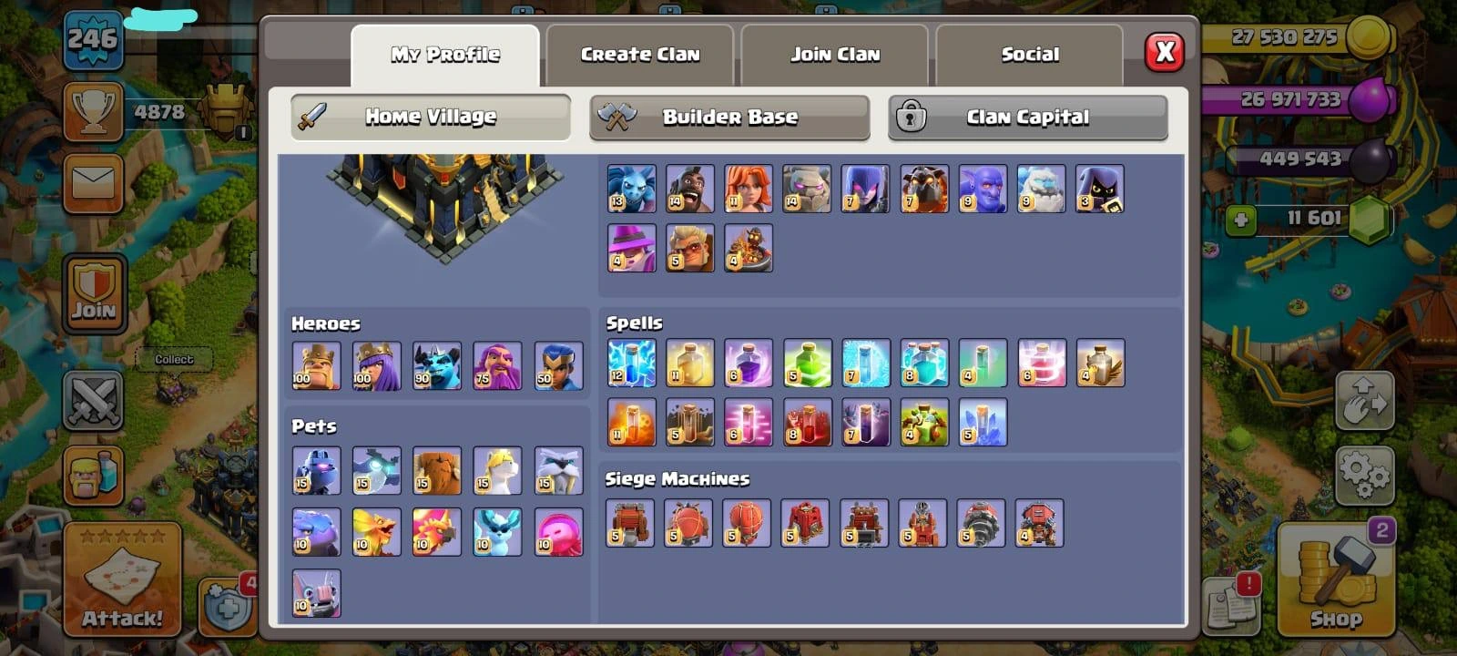 🔥US LOCAL🇺🇸🔥RARE ACC😍101% MAX Th 17‼️LEAGUE SET🥵11600 GEMS-958 CWL🍀60+ COOL SKIN🎗️4 RARE SCENERY💢HELPER HUT MAX🙂↔️FULL MAGIC ITEMS😍BH MAX💢NC FREE🍀INSTANT ACCESS