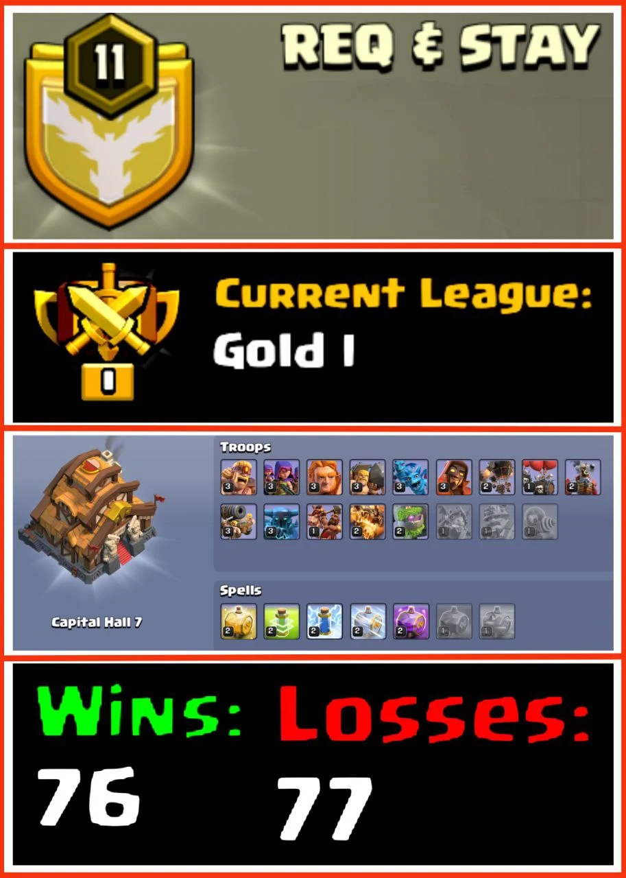 💥CRAZY PRICE💥 🔥OP 11 LEVEL R&S CLAN 💧NICE NAME : REQ & STAY ☔ LEAUGE : GOLD 1 💢 CLAN CAPITAL : 7 ✴️ WINS : 76 | LOSS : 77 🍄 BEST CLAN BUY NOW ❇️ FAST DELIVERY✨