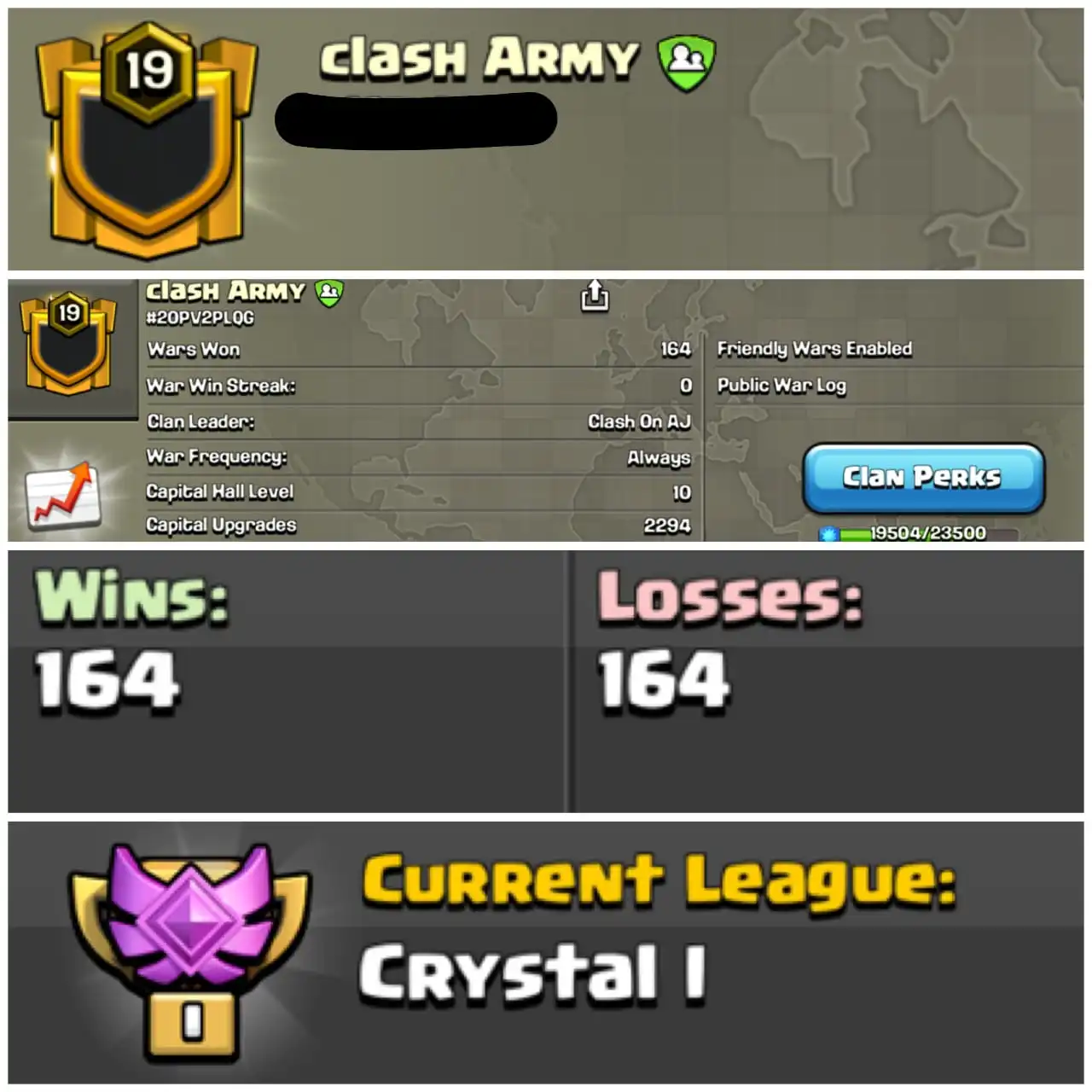 🎃[ALMOST 20 LVL🌟ALMOST MAX CC 10💥]🔥NAME- clash Army | 💥LVL- 19 |☠️ WARLOG W-L : 164-164| CWL LEAGUE : CRYSTAL 1🏆 | CC: 10 !!⚡⚡
