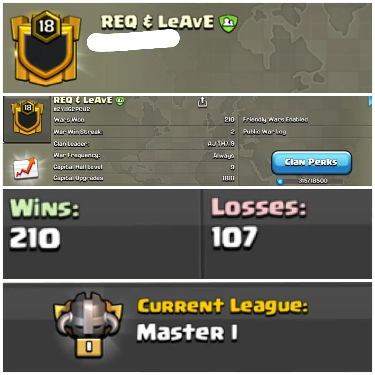 🔥[CC ALMOST 10]🔥NAME- REQ € LeAvE | 💥LVL-18 |☠️ WARLOG W-L-D: 210-107 | CWL : MASTER 1⚡✨OP CLAN🔥