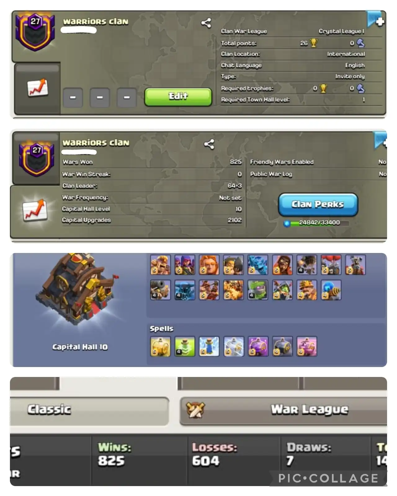 🔥[RARE LVL 27🎃 + CC:10 MAX]🔥NAME- warriors clan | 💥LVL- 27 |☠️ WARLOG W-L-D: 825-604-7 | CWL LEAGUE : CRYSTAL 1🏆 | CC: 10 MAX ALMOST !!⚡⚡