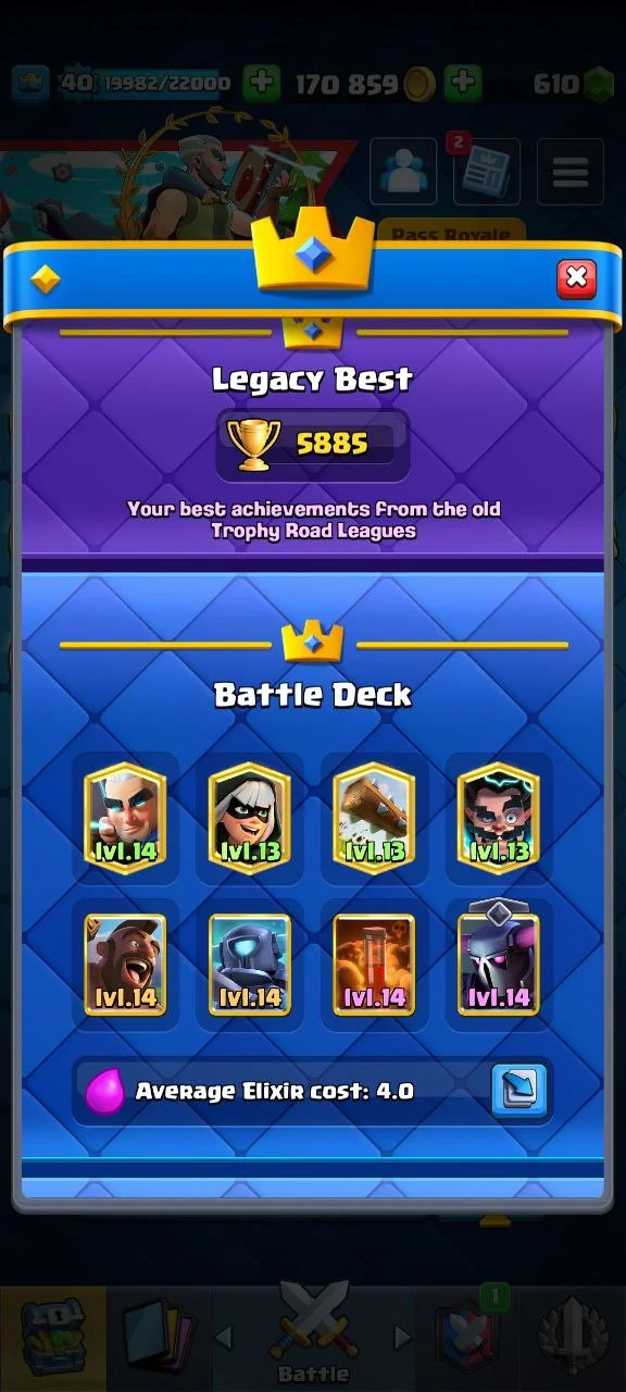 π 7614 Trophies π | Arena 20 | 6 Max Cards π | King Tower Lv.13 π | 9 Years Badge ποΈ | 21 Emotes π | 6 Tower Skins π° | Instant Delivery π