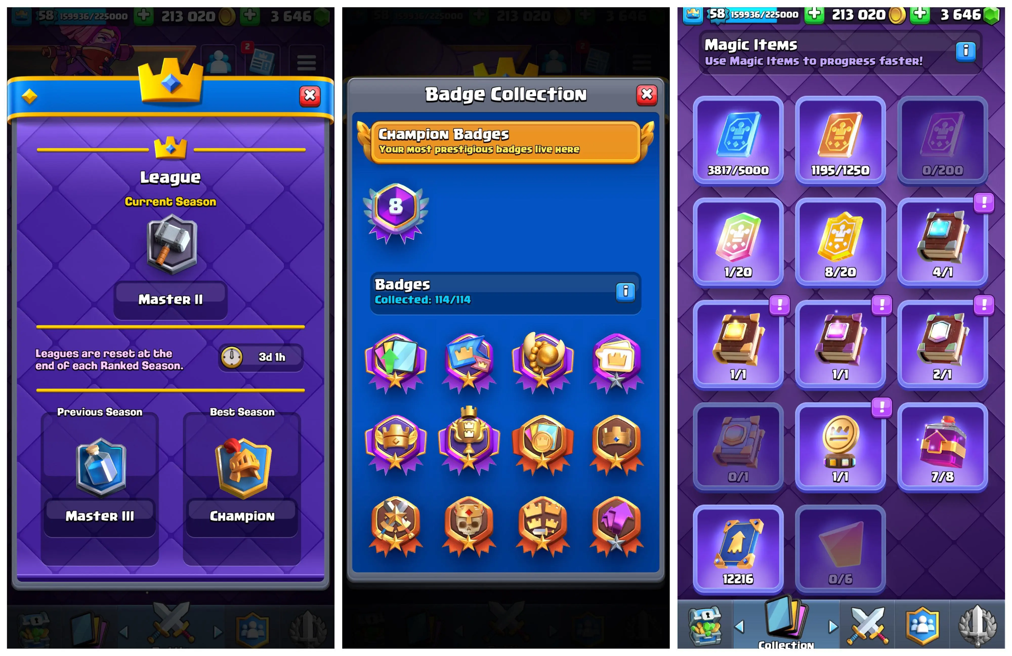 BARBARIAN STATUE EMOTE ✨LEVEL 58 ⸱ KT LEVEL 15 | 92 MAX CARDS | 14 ELITES | 17x EVO CARDS ✨ 129 EMOTES ✨ 12 TOWER SKINS ✨ CHAMPION BEST | 8700+ TROPHY | 200k GOLD