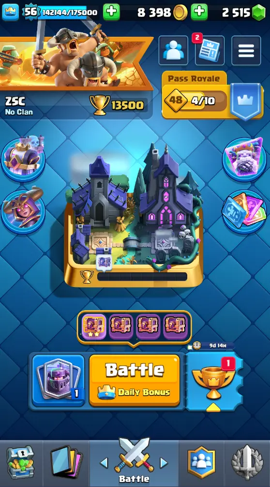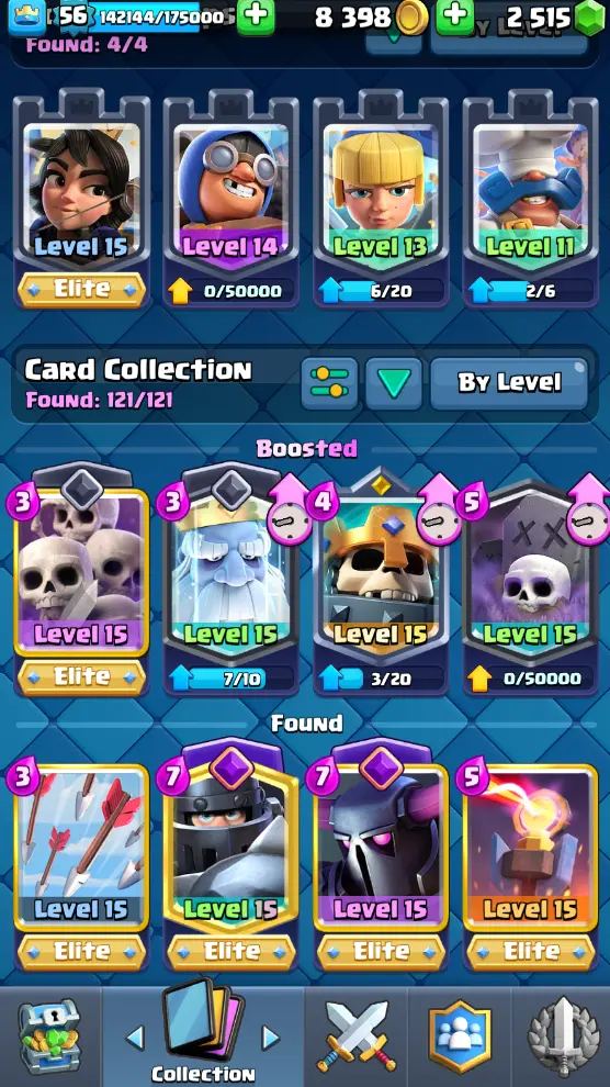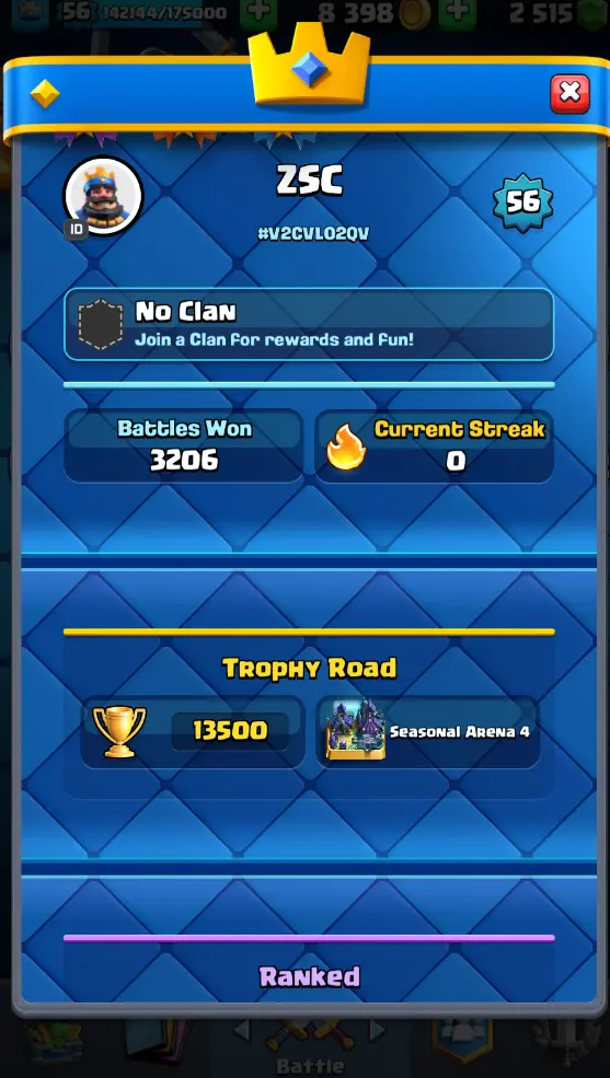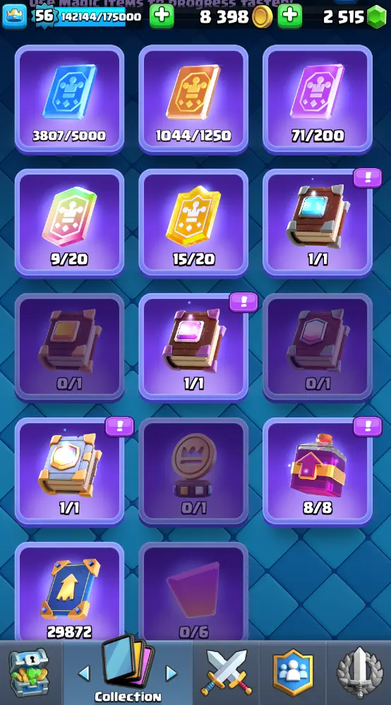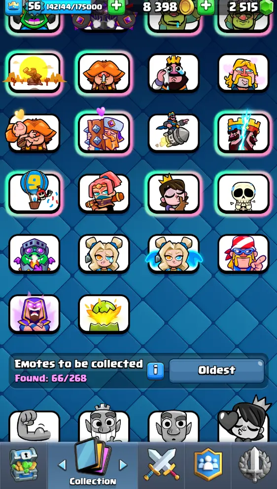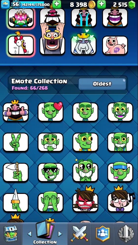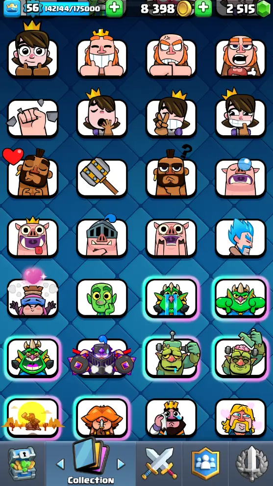 CR Lvl 56 almost 57 ✨ 13500 Trophy ✨ KT 15 ✨ 11 Elite cards ✨ 36 max cards ✨ 13 Evo cards ✨ Stacked inventory ✨ 2500 Gems ✨ 66 emotes ✨ 6 Tower skins
