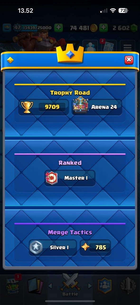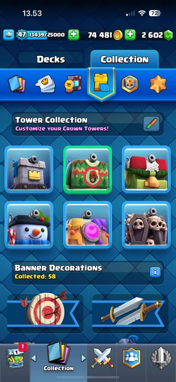 CR XP 47🔥KT14🔥Cn Free🔥2 Elite🔥13 Max Card🔥5 Evo🔥39 Emotes🔥5 Skins Tower🔥Arena24🔥Acces Full🔥Cheapest and Safe Account