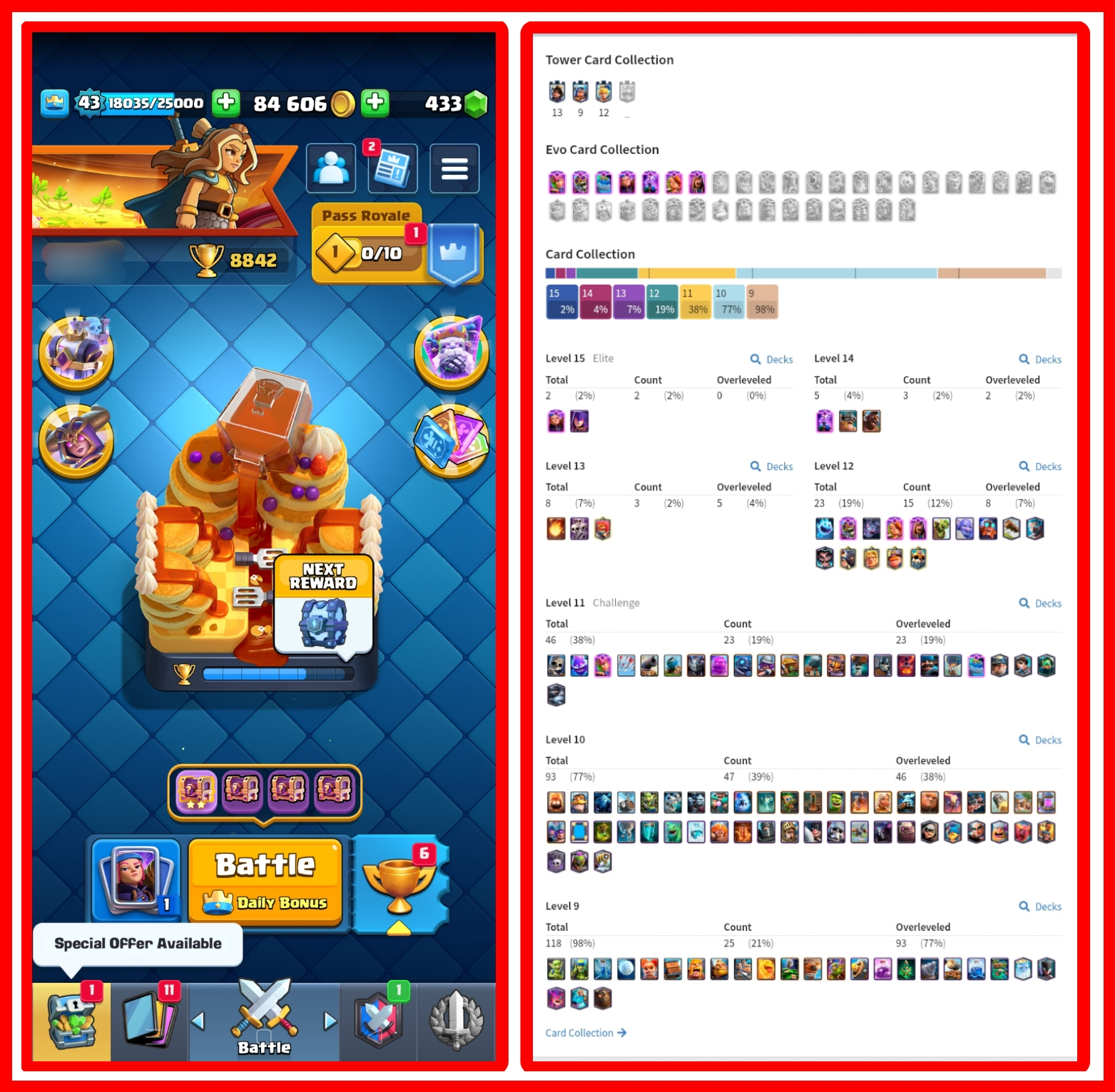 [DISCOUNTED DEAL] π LEVEL 43 π 8842 TROPHIES π ARENA LEVEL 22 π KT LEVEL 14 π 7 EVOLUTION CARDS π€© 2 ELITE CARDS π 5 MAX CARDS π π CHEAP PRICE πΈ INSTANT DELIVERY π― ANDROID & IOS βοΈ
