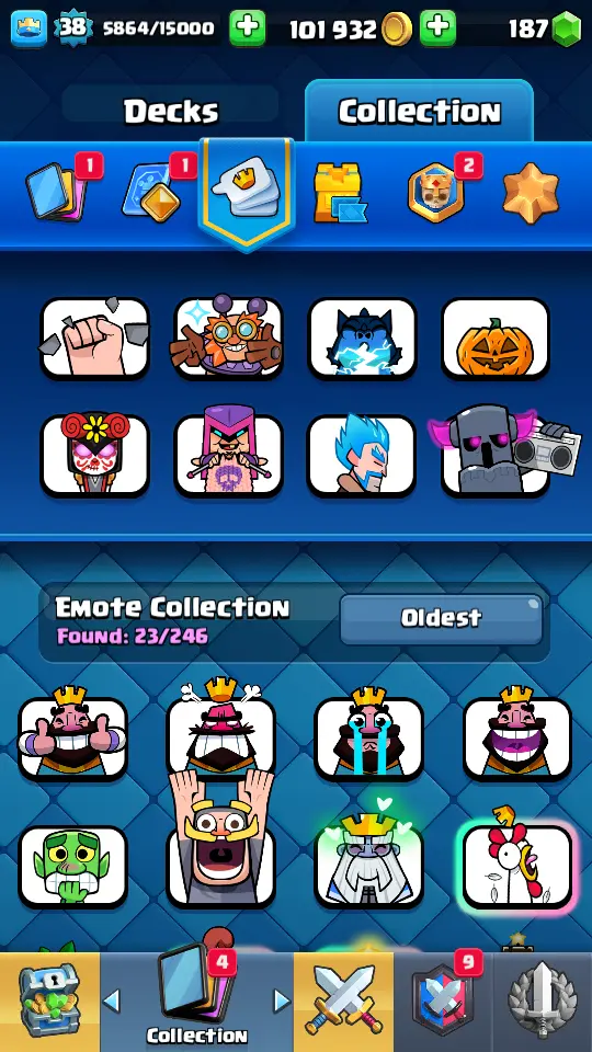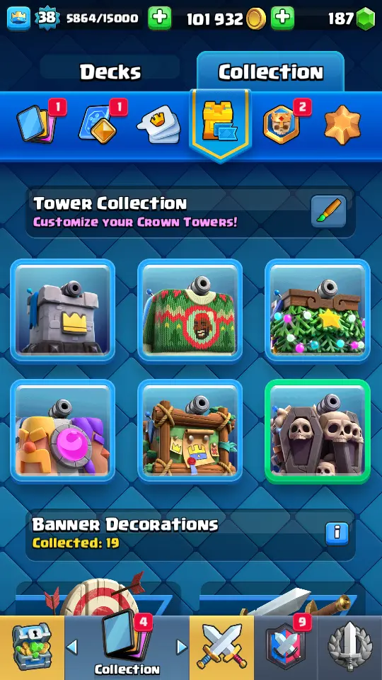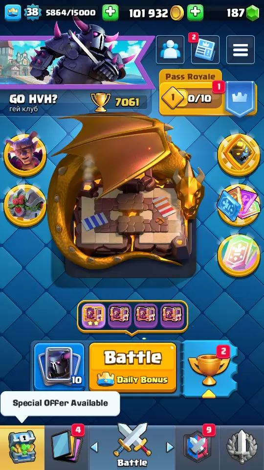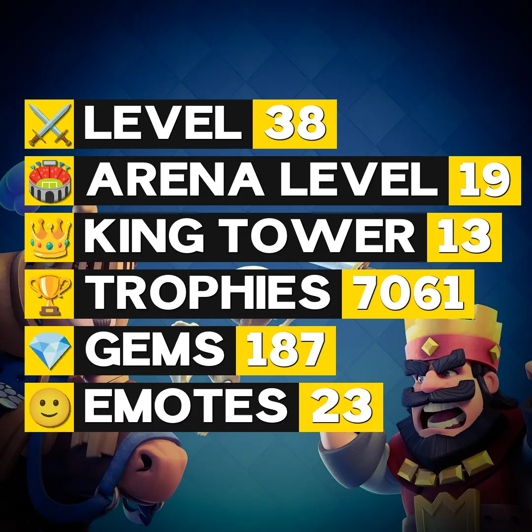 👑 King Tower 13 🏆 7061 Trophies ⚔️ Level 38 💎 Gems: 187 🧬 Evolutions: 2 🔒 Recovery Codes