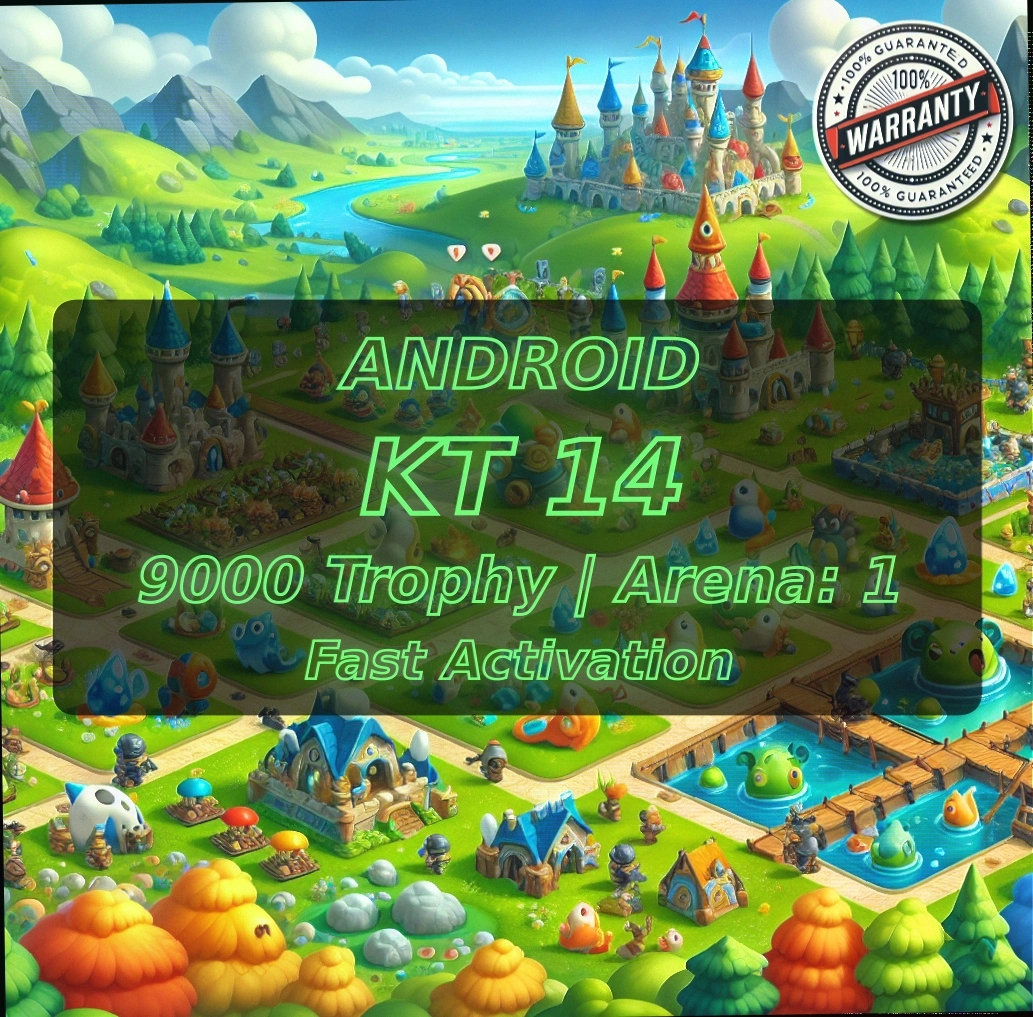 KT 14 LEVEL 54+Trophies:9000+12 Evolution+118 Cards+4 Cards (MAX) + 31 Cards (14LVL)+3 Tower Skins+51 Emotes+675K Gold+9622 Gems+IOS/ANDROID #ACC-161506