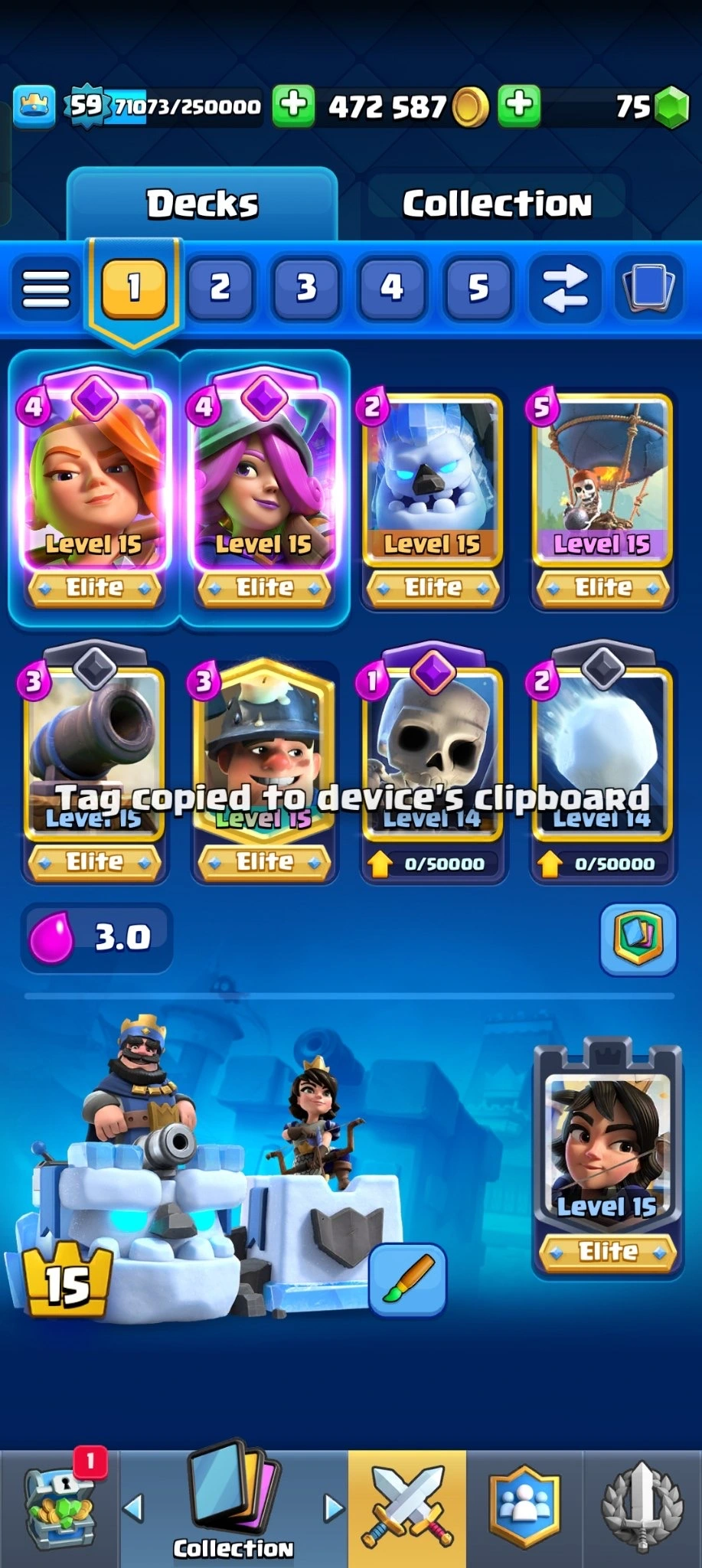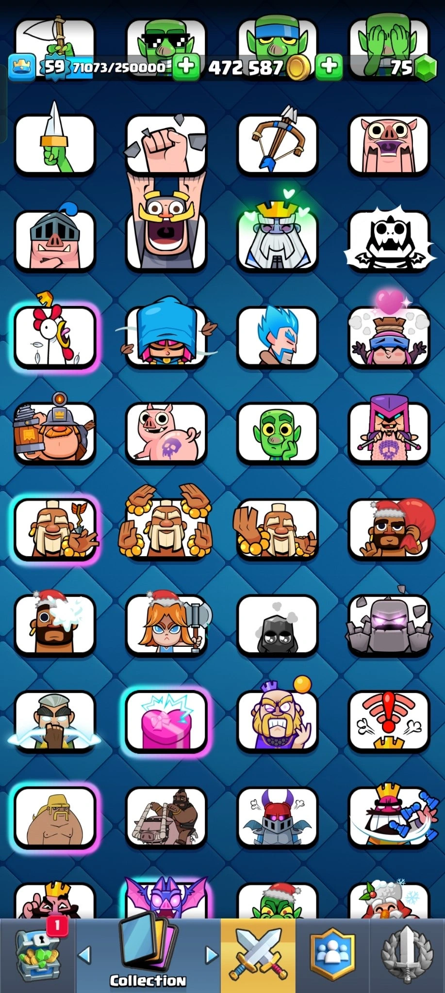 π₯ [PREMIUM] π₯RARE EMOTESπ₯ 12000 TROPHYS π₯ 18 EVO CARDS π₯17 ELITE CARDS π₯82 MAX CARDS π₯ 97 EMOTES π₯XP (59)π₯KT (15) π₯ 472587 GOLD π₯ 75 GEMS π₯Β INSTANT DELIVERY π