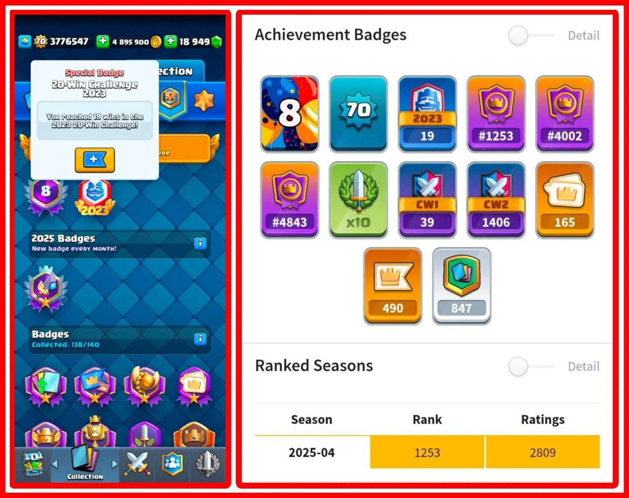 ✨️ (RAREST) 🌟 ALL CARDS ELITE 🔥 FULLY EVOLVED 😈 70 XP 🎯 18900 GEMS 💎 4/4 TOWER TROOPS ELITE 🐟 42 TOWER SKINS 🐉 RAREST CHAMPION KING 🏅 EMPEROR KING 👑 EVO ICE SPIRIT 🎯 LAUGHING HOG 💫 ROYAL GIANT 💣 GOBLIN EMOTE COLLECTION 🚀 12150 TROPHIES 🏆 CRL BADGE 🐧