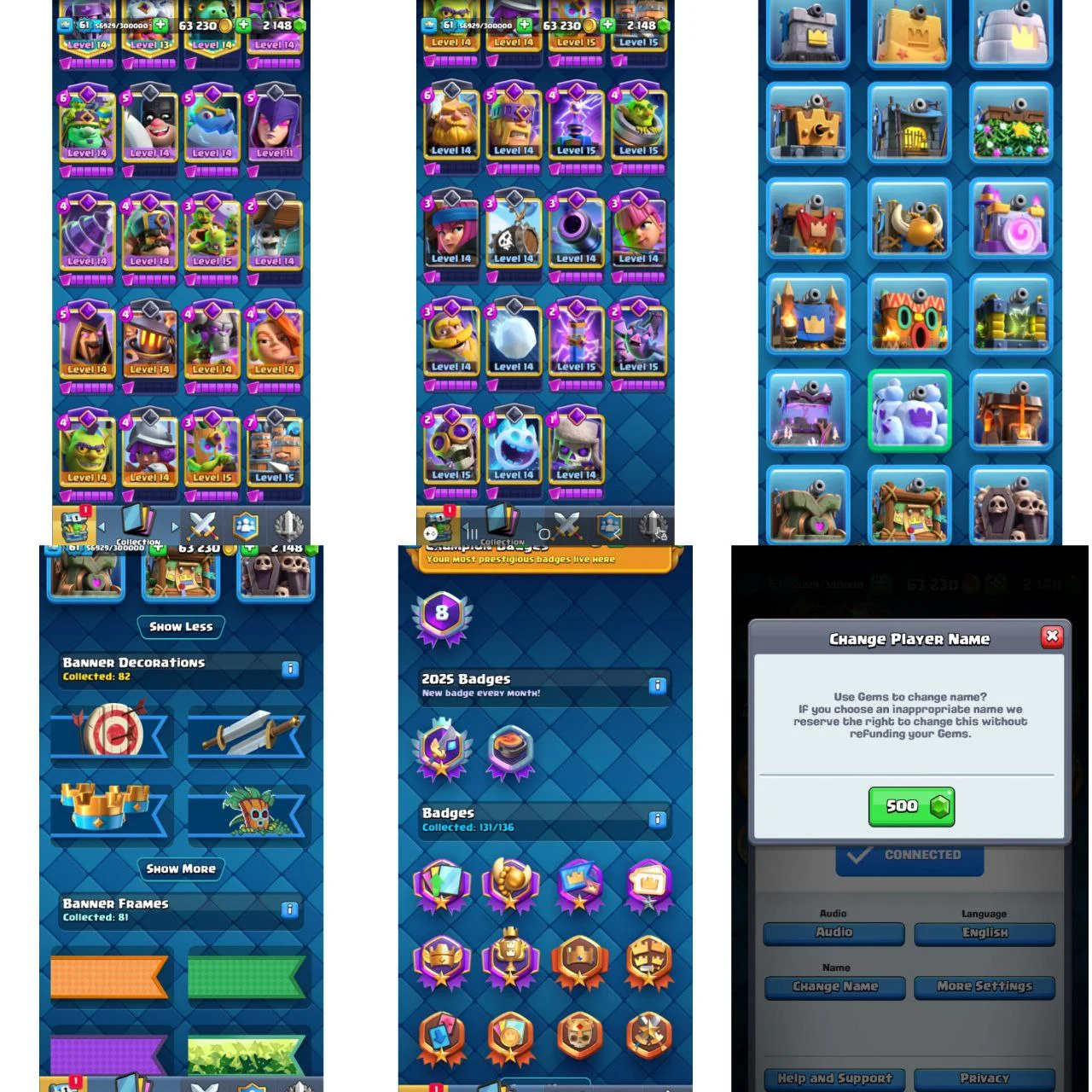 🔥XP-61🔥RARE KT-15✨ 94X MAX CARDS[25X ELITES]✨ EVO-23⚡ 137 EMOTES INC PEKKA BALLON LNY PIGGY AND MANY MORE✔️FAST DELIVERY