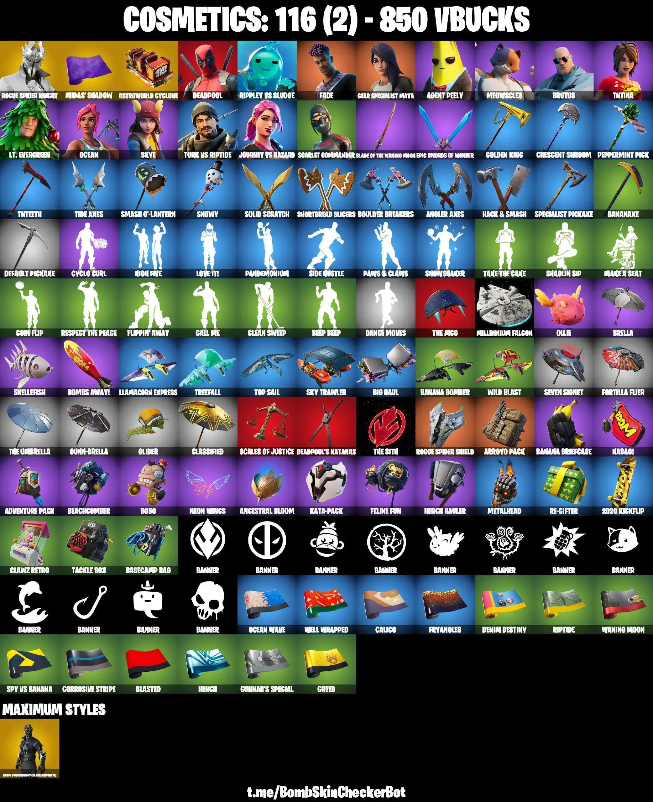 ❤️ 15 SKINS ❤️ ROGUE SPIDER KNIGHT MAX ❤️ MAYA ❤️ AGENT PEELY ❤️ SKYE ❤️ SCARLET COMMANDER ❤️ MEOWSCLES ❤️ ASTROWORLD CYCLONE ❤️ PEPPERMINT PICK ❤️ CAN PLAY ON PSN ❤️ XBOX ❤️ PC ❤️ NINTENDO ❤️ MOBILE ❤️ 850 VBUCKS ❤️