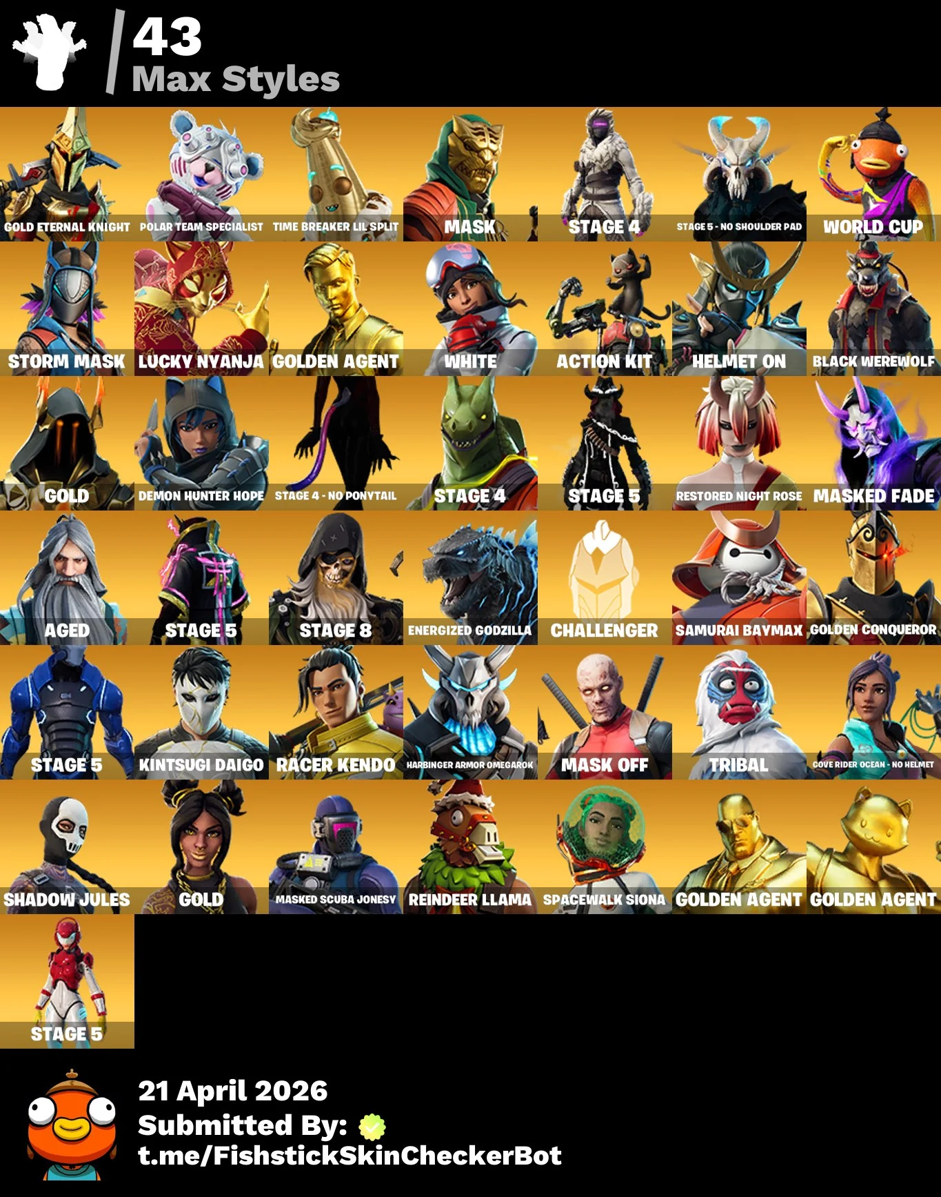 150 Skins Stacked Account ⭐ OG STW 🔥 Take The L 💥 Gold Midas ⭐ World Cup