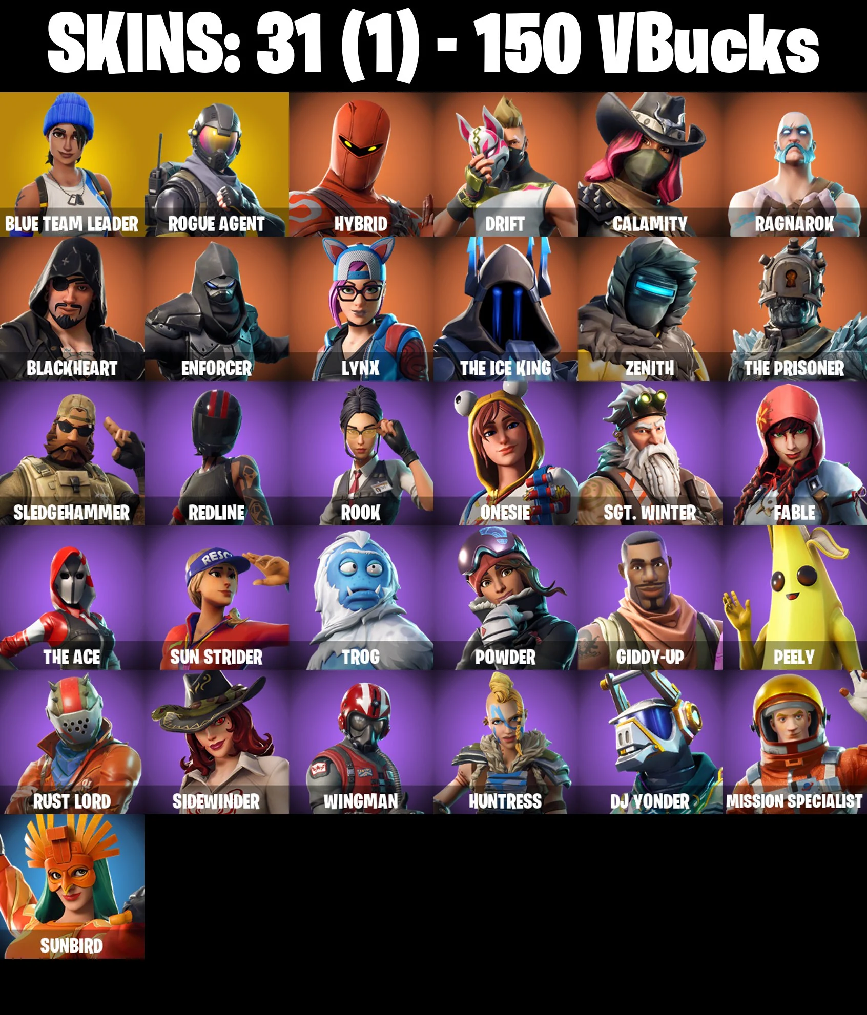 π31 SKINS β‘οΈPCβ‘οΈ BLUE TEAM LEADER π ROGUE AGENT π HYBRID π DRIFT π CALAMITY π RAGNAROK π BLACKHEART π ENFORCER π LYNX π THE ICE KING β‘οΈ 150 VB #M475