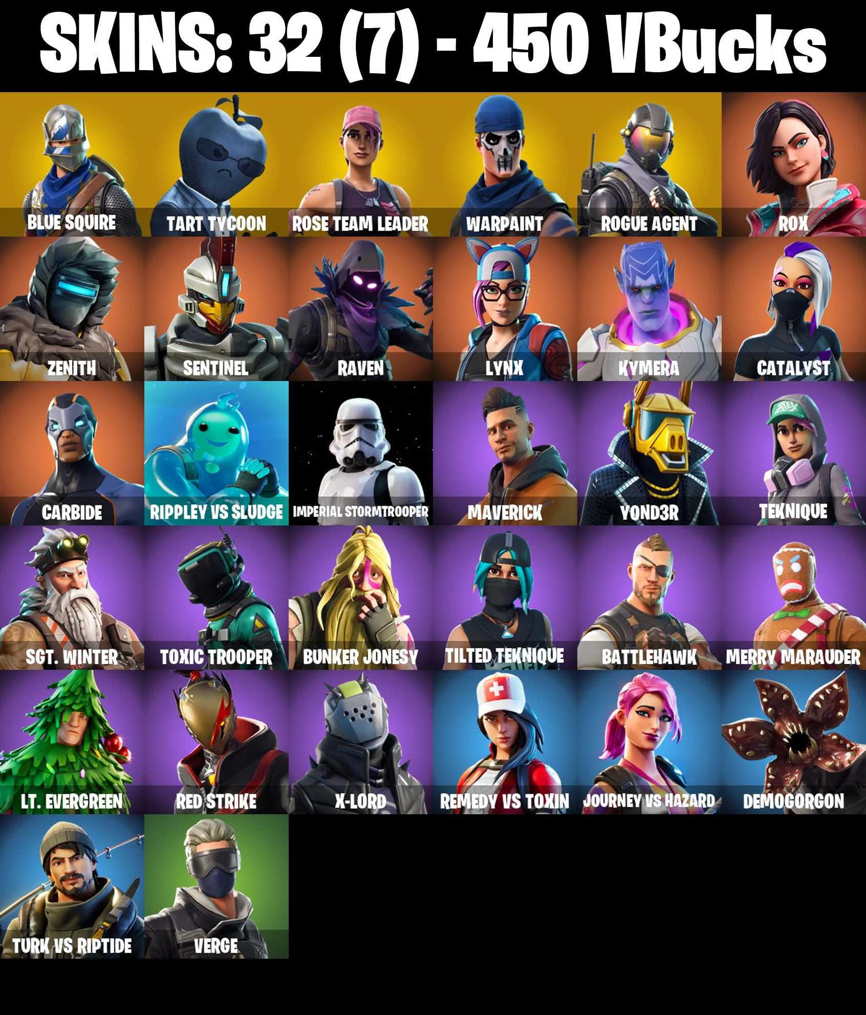 🎆32 SKINS ⚡️PC⚡️ BLUE SQUIRE 👑 TART TYCOON 👑 ROGUE AGENT 👑 ROX 👑 ZENITH 👑 SENTINEL 👑 RAVEN 👑 LYNX 👑 KYMERA 👑 CATALYST 👑 CARBIDE ⚡️ 450 VB #M651