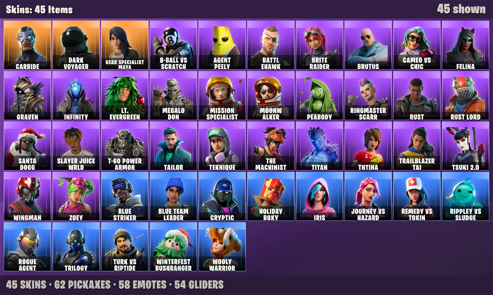⭐️ 45 Skins | Take The L + Blue Team Leader + Rogue Agent + Blue Striker + Trilogy + Carbide + Dark Voyager + Gear Specialist Maya | 600 VB
