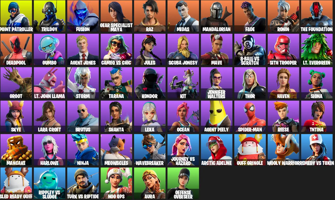 56 skins | Gold Brutus | Gold Midas | Gold Meowscles | Trilogy | Point Patroller | Ronin | Gear Specialist Maya | Fusion | The Foundation