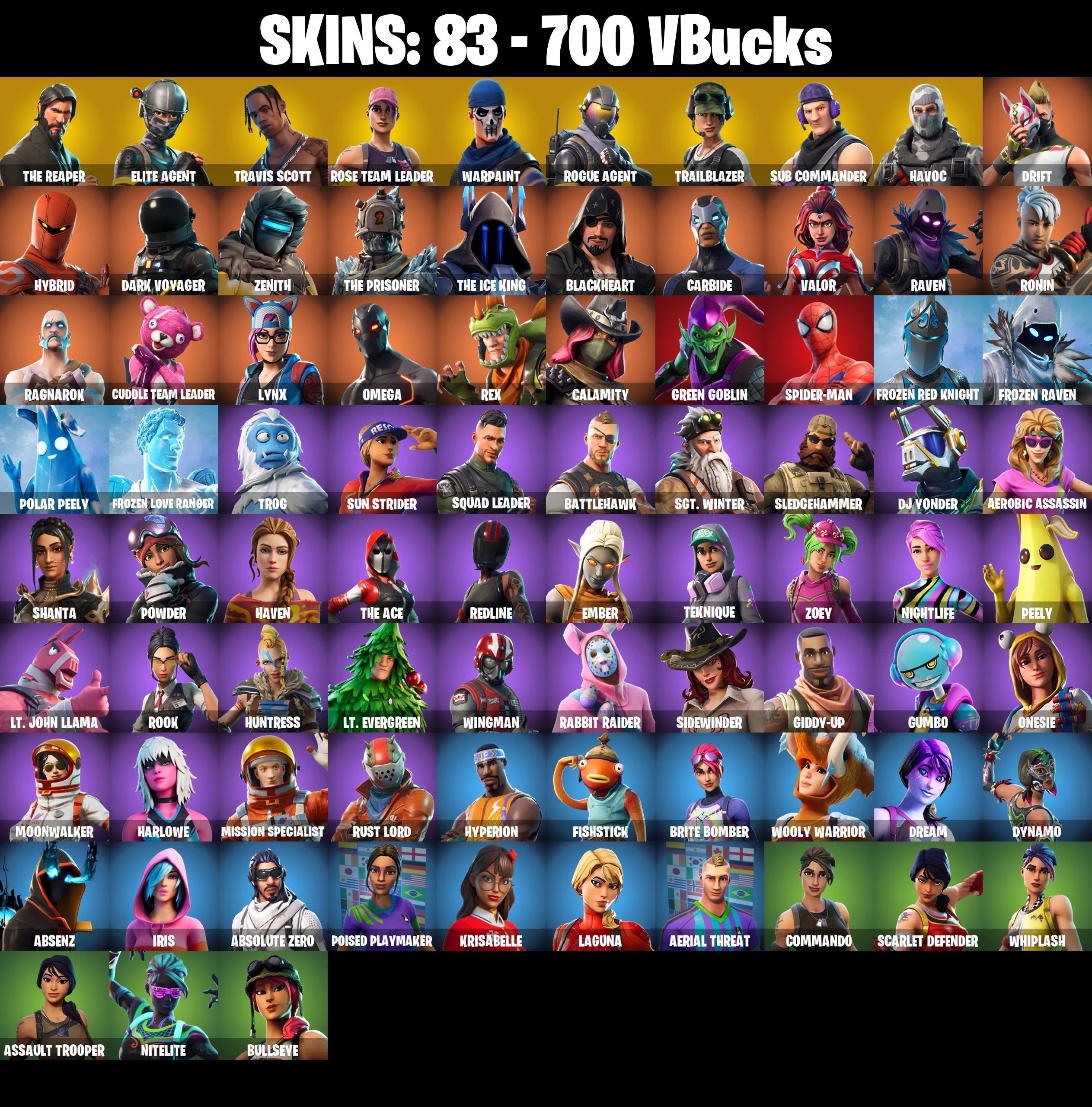 🎆83 SKINS ⚡️PC/PSN⚡️ THE REAPER 👑 ELITE AGENT 👑 TRAVIS SCOTT 👑 ROGUE AGENT 👑 TRAILBLAZER 👑 SUB COMMANDER 👑 HAVOC 👑 DRIFT 👑 HYBRID ⚡️ 700 VB #M641