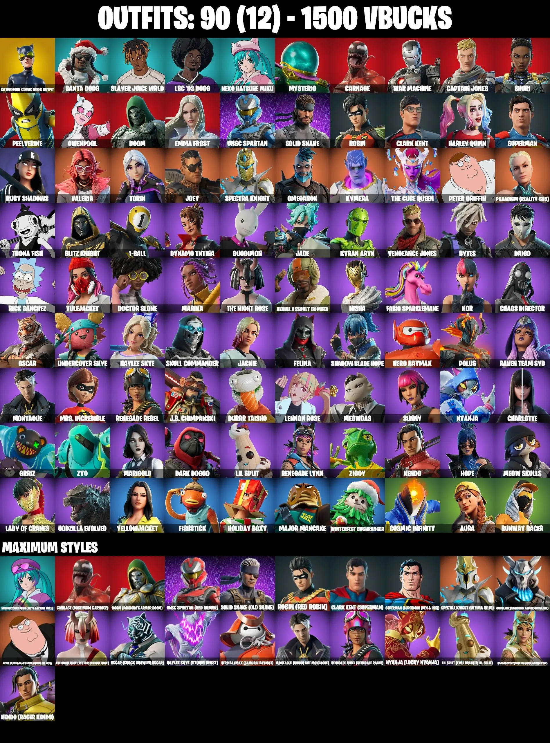 90 SKINS | CATWOMAN COMIC BOOK OUTFIT | JABBA SWITCHWAY | GET GRIDDY | NEKO HATSUNE MIKU MAX | HAYLEE SKYE MAX | CHARLOTTE | KOR | MES ICREDIBLE | AURA | LADY OF CRANES | DARK DOGGO | DURRR TAISHO | | ICE BREAKER | CAN PLAY ON PS