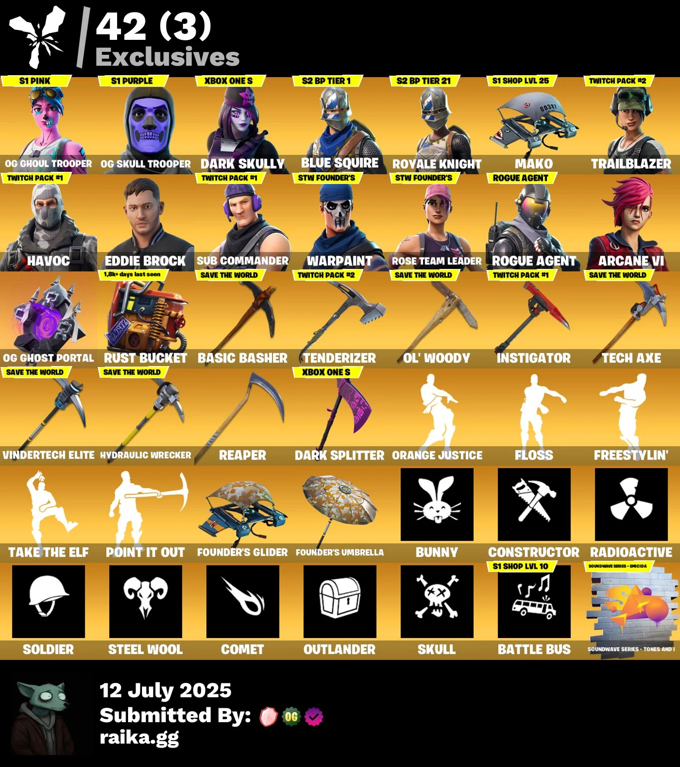 💥🌟💥 EXCLUSIVE OFFER 💥🌟💥 104 SKINS 💎 OG GHOUL TROOPER (PINK) 💎 OG SKULL TROOPER (PURPLE) 💎 ARCANE VI 💎 THE REAPER 💎 ROYALE KNIGHT 💎 MAKO 💎 TRAILBLAZER 💎 HAVOC 💎 FLOSS 💎 FREESTYLIN 💎 FULL ACCESS 🎮