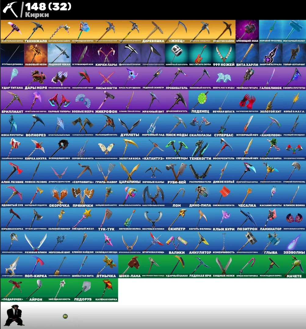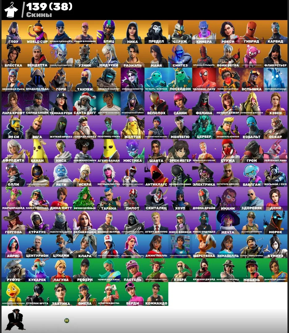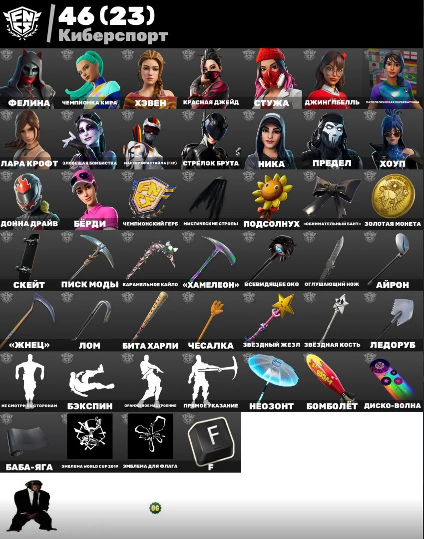 F806 Glow, Blitz, Nika, Limit, Karas (World Cup), Kylo, Ski, Lara Croft, Oko — 139 skins
