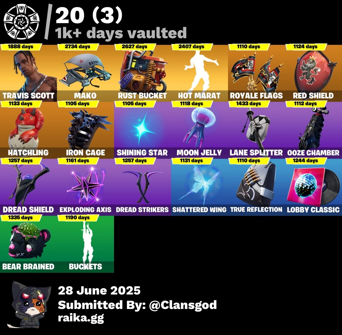 G.O.A.T SKINS✨FULL SEASON 3💀PC/XBOX🔥114 skins | OG STW | Travis Scott | The Reaper | Blue Squire | Royale Knight | Elite Agent | Mako | Take The L | Raider's Revenge | Rogue Agent | 165 VB