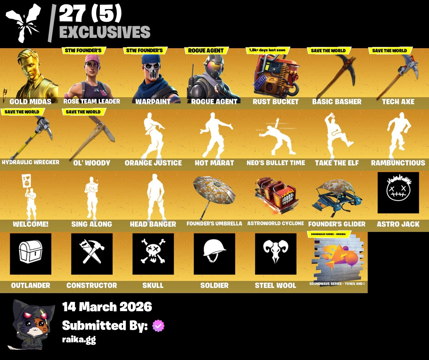 🔥 Gold Midas | Rogue Agent | Drift | Calamity | 91 Skins | 1150 VB ✅ Full Access [PC/PSN/XBOX]