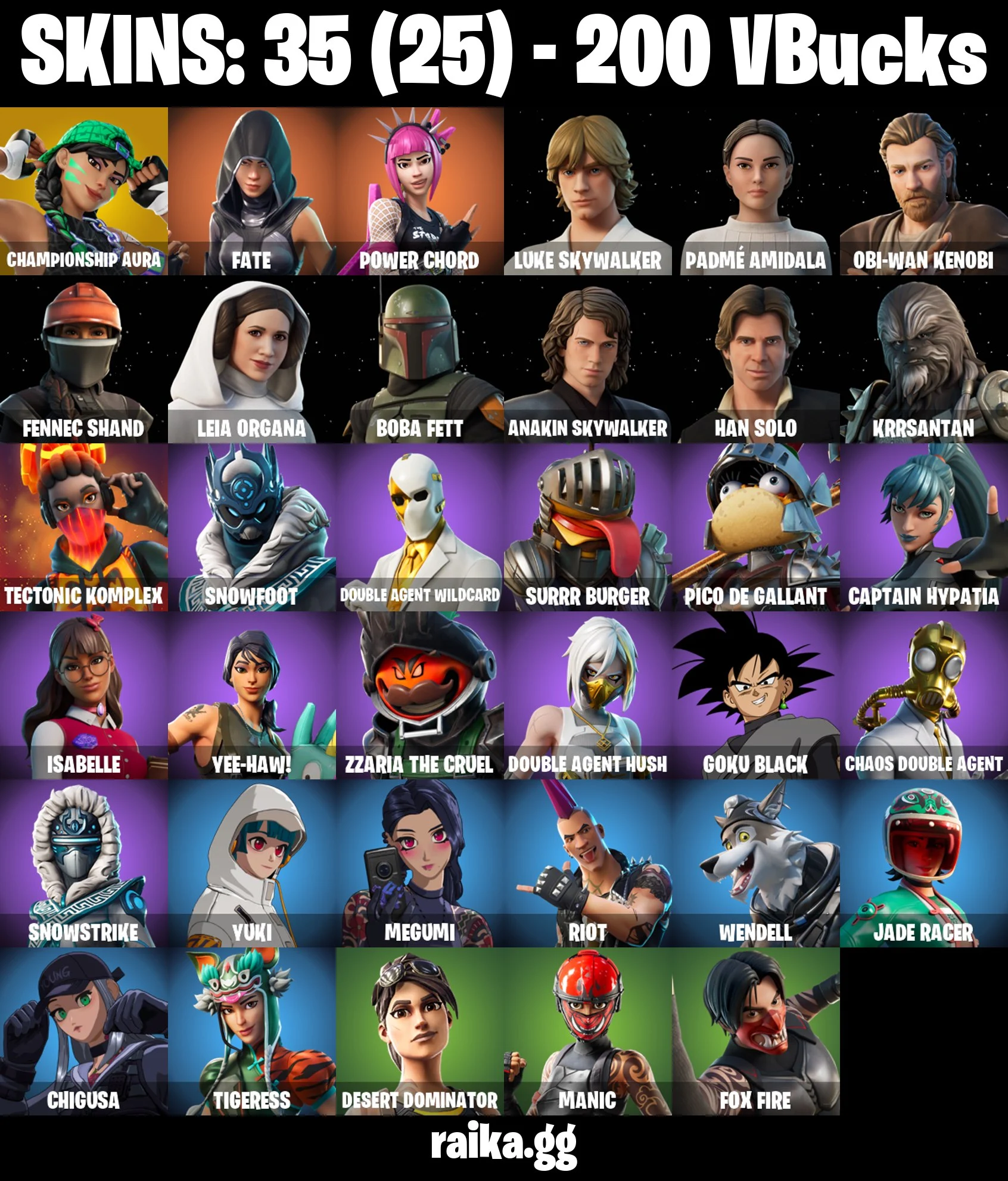 Original Email ✅ Inactive for 3 years | 35 skins | Championship Aura | Fate | Power Chord | Luke Skywalker | Padmé Amidala | Obi-Wan Kenobi | Fennec Shand | Leia Organa | Boba Fett | 200 VB