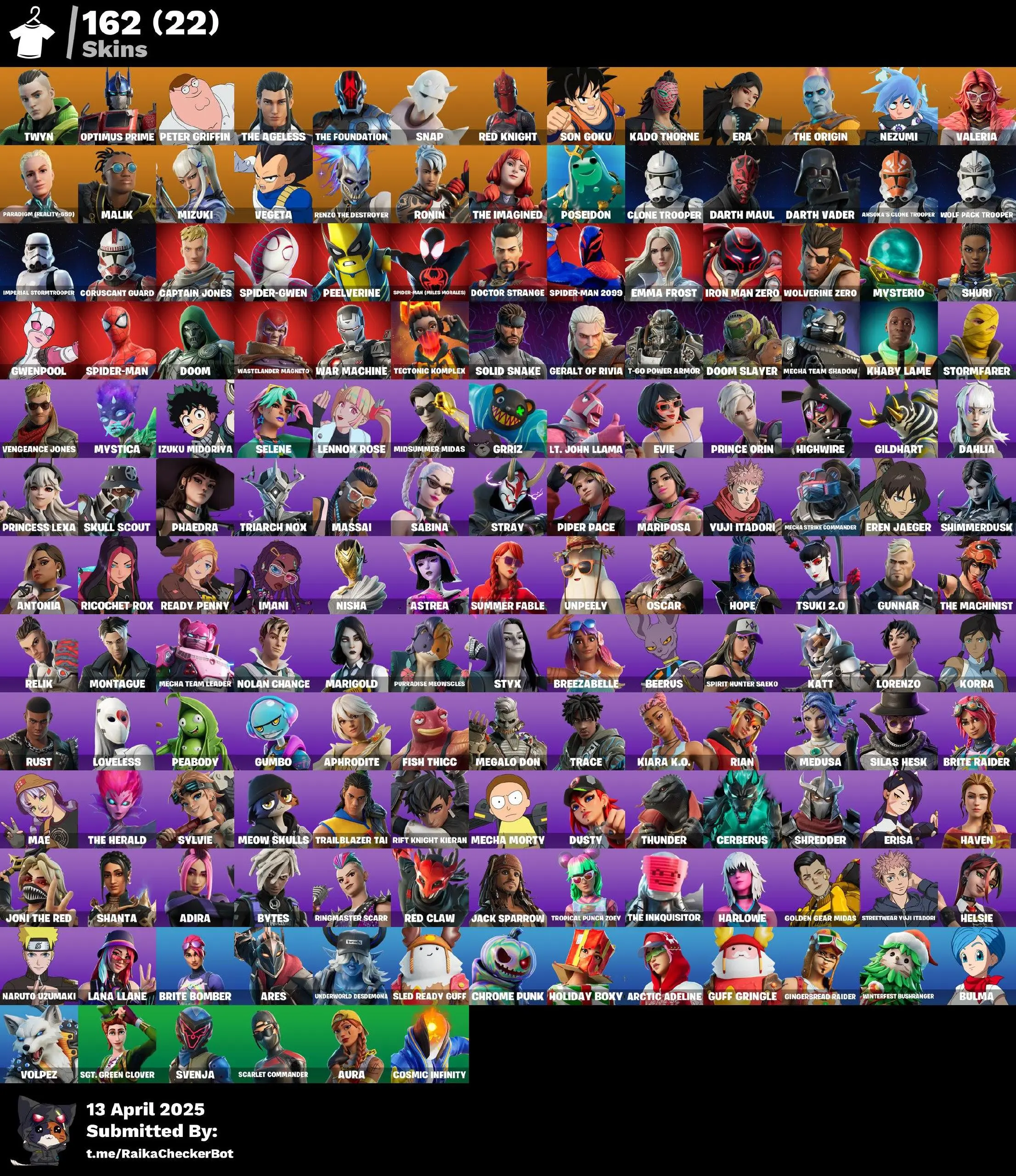 [PC] 162 skins | Twyn | Optimus Prime | Peter Griffin | The Ageless | The Foundation | Snap | Red Knight | Son Goku | Kado Thorne ⸱ CHICKSFFN019