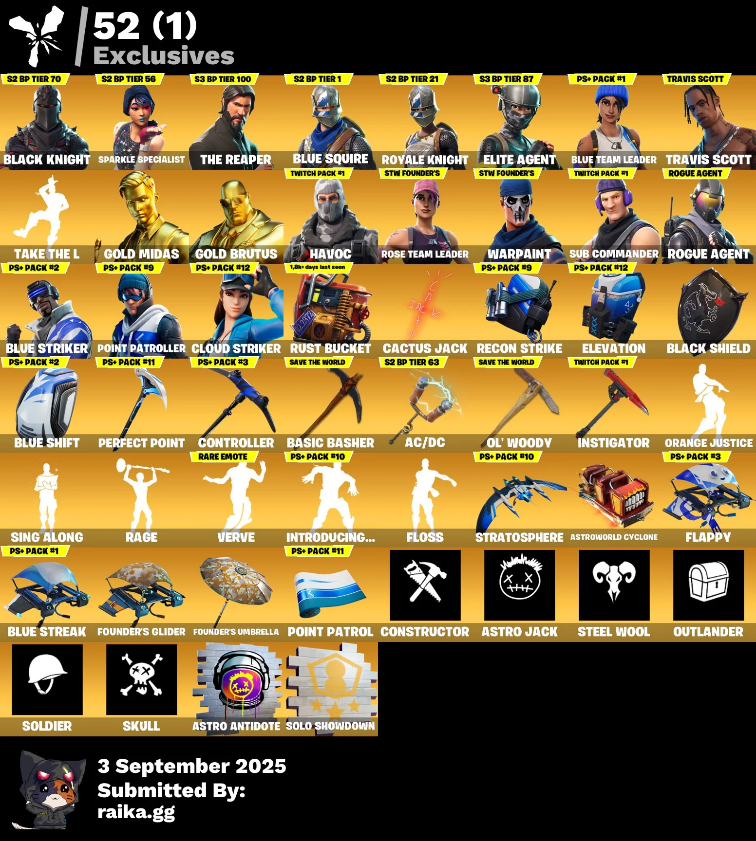 [PC | PSN | XBOX ] 90 skins | OG STW | Black Knight | Travis Scott | Sparkle Specialist | The Reaper | Blue Squire | Royale Knight | Elite Agent | Blue Team Leader | 210 VB