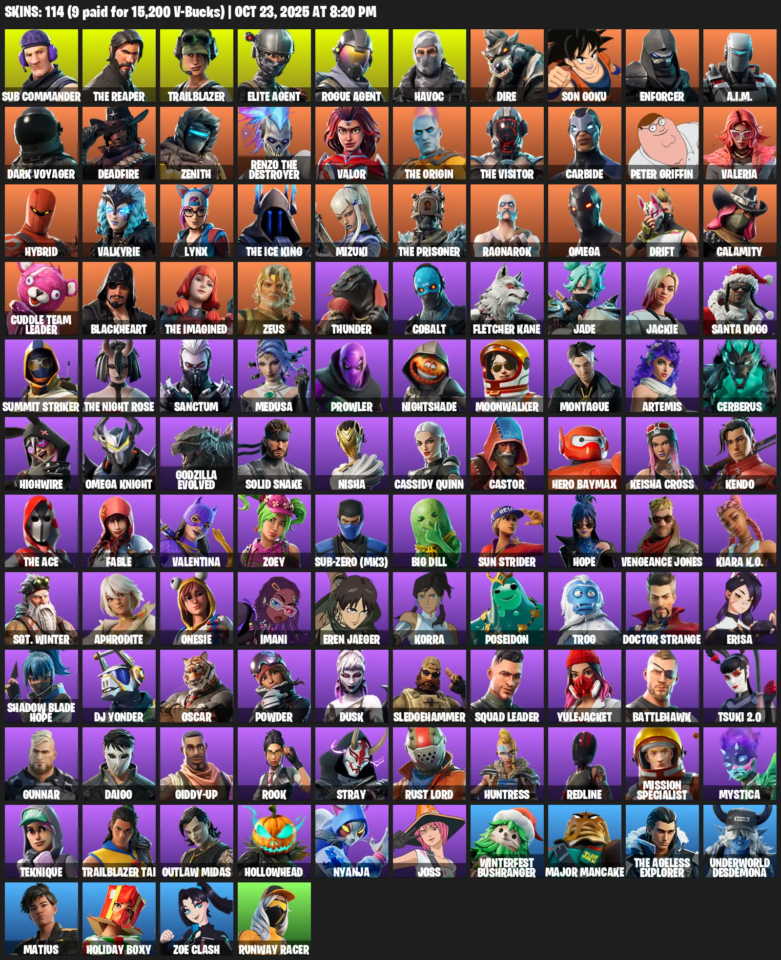 [PC/PSN] | 114 skins | 2150 V-bucks | Take The L | The Reaper | Elite Agent | Omega | Sub Commander | Trailblazer | Rogue Agent | #YRB4287 | #MBFN