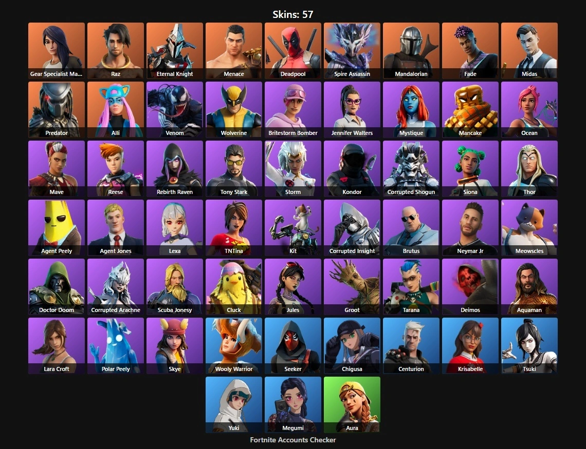 PC/PSN 57 Skins⚡ | Deadpool | Midas | Lara Croft | Gear Specialist Maya | Raz | Eternal Knight | Menace | Spire Assassin | Mandalorian | Fade | Predator