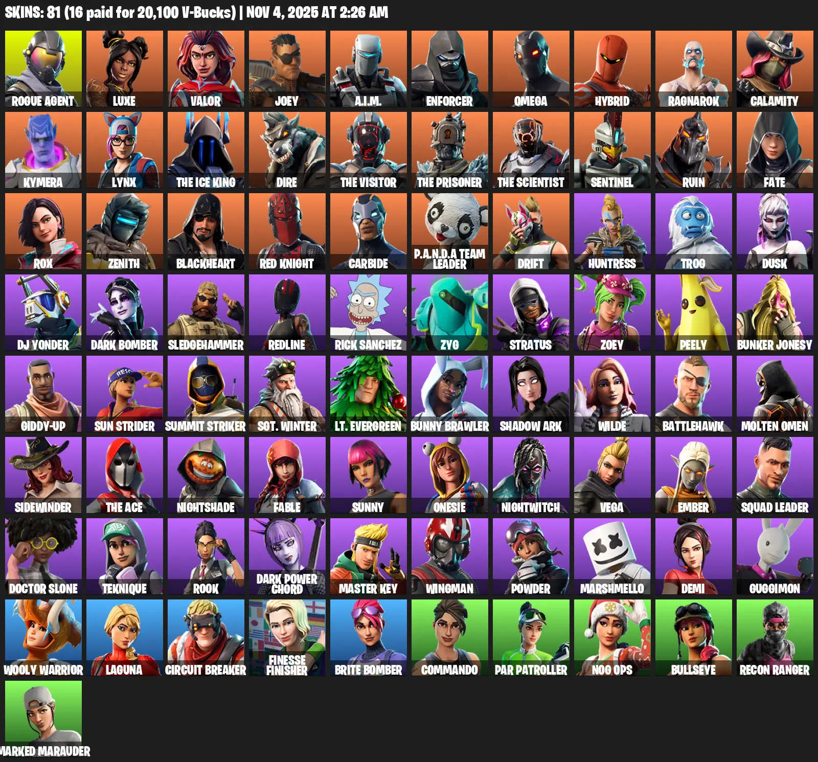 [PC/PSN] | 81 skins | Omega | Reaper Axe | Rogue Agent | Luxe | Valor | Joey | A.I.M. | Enforcer | Hybrid | Ragnarok | Calamity | #JXW6474 | #MBFN
