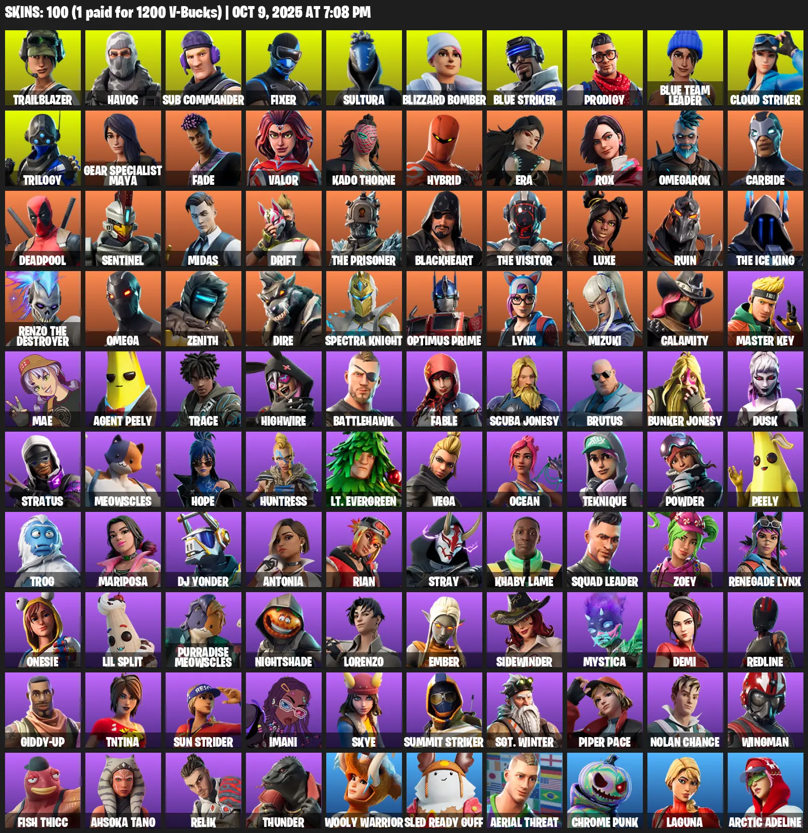 [PC/PSN/XBOX] | 100 skins | 1900 V-bucks | Omega | Trailblazer | Havoc | Sub Commander | Fixer | Sultura | Blizzard Bomber | Blue Striker | S4G