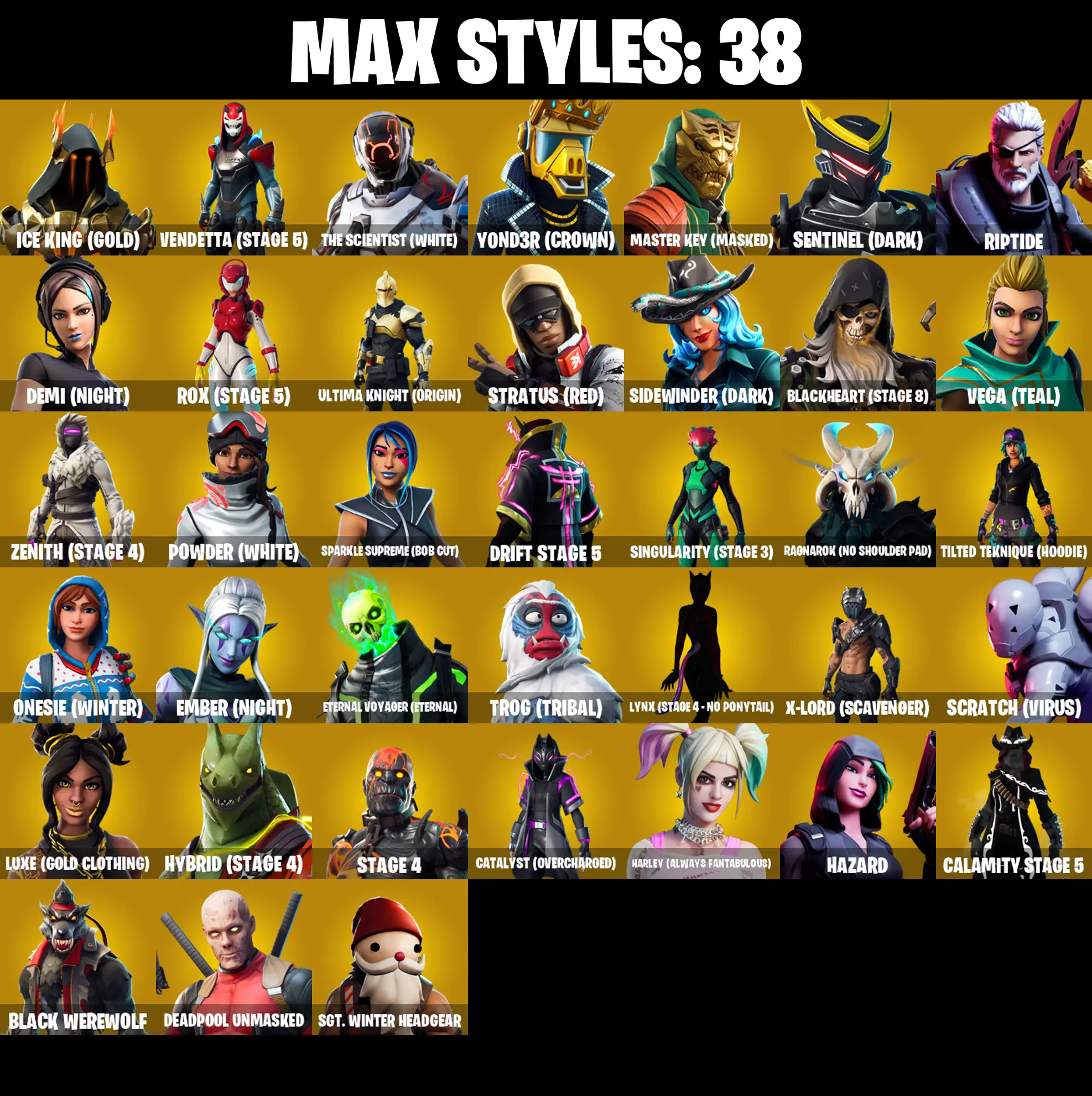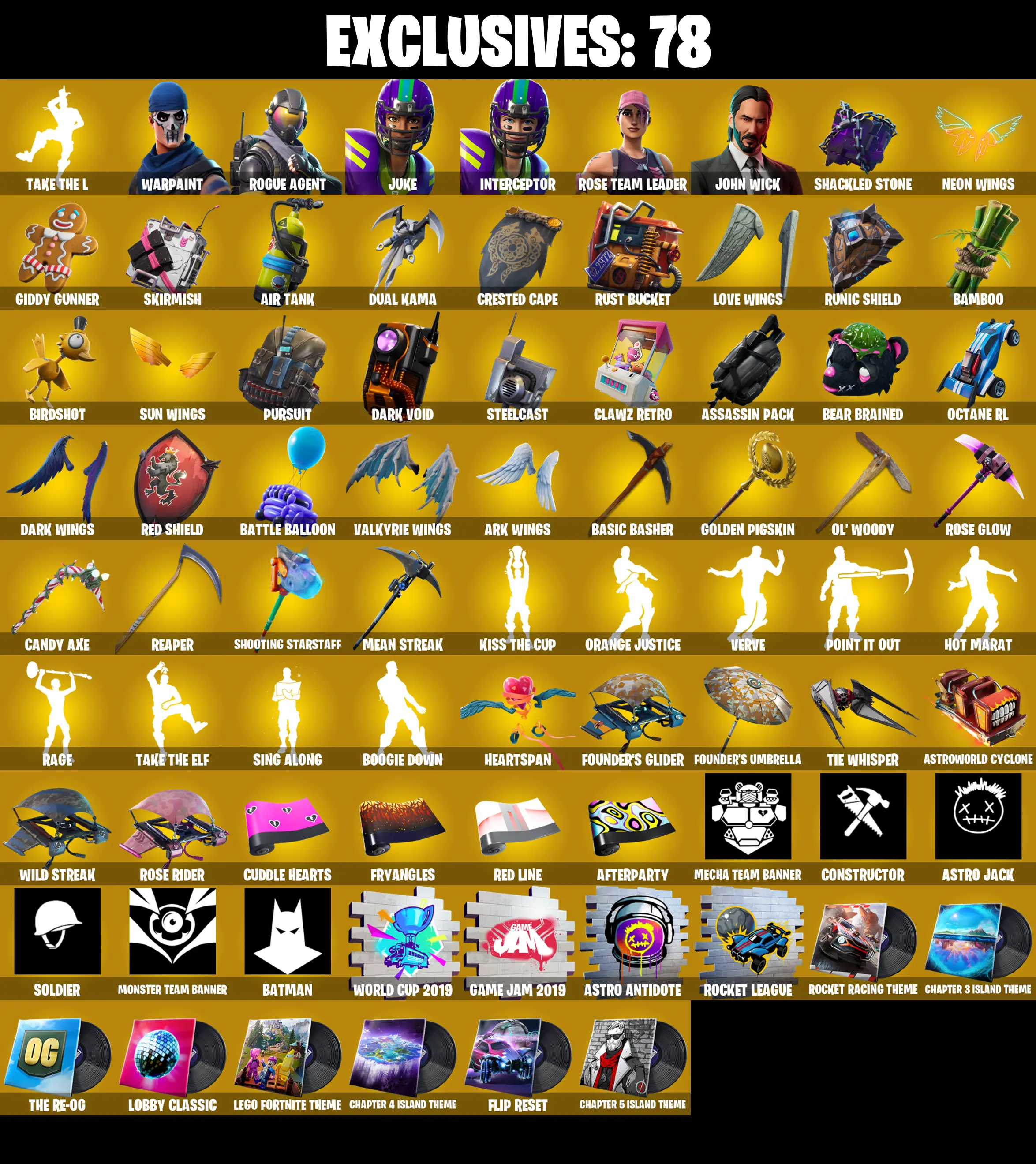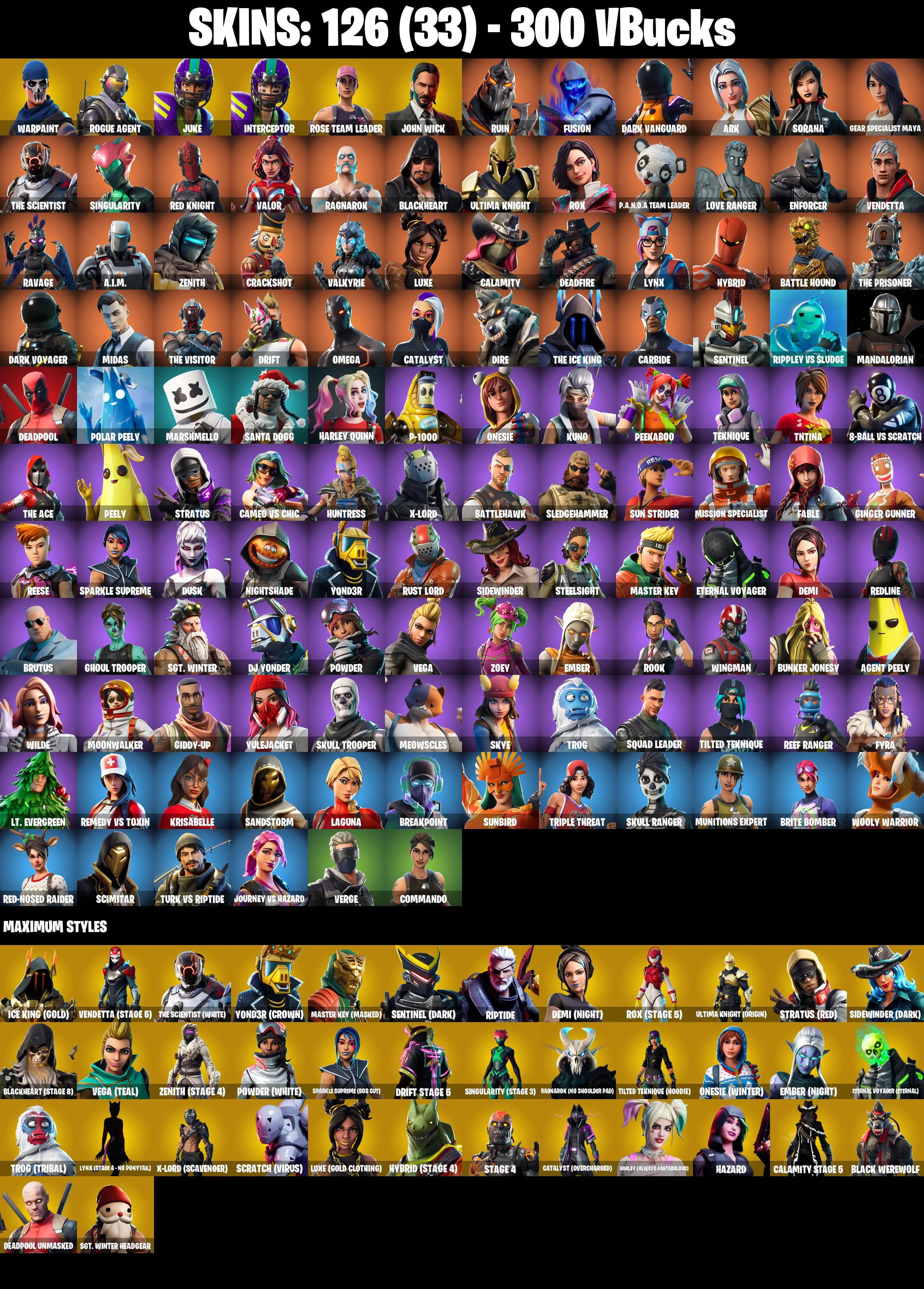 ๐ [PC/PSN/XBOX] 126 SKINS | Take The L, OG STW, Rogue Agent, Juke, Interceptor, John Wick, Ruin, Fusion, Dark Vanguard, Ark, Sorana, Gear Specialist Maya, The Scientist, Singularity, Red Knight, Valor, Ragnarok, Blackheart, Ultima Knight, Rox
