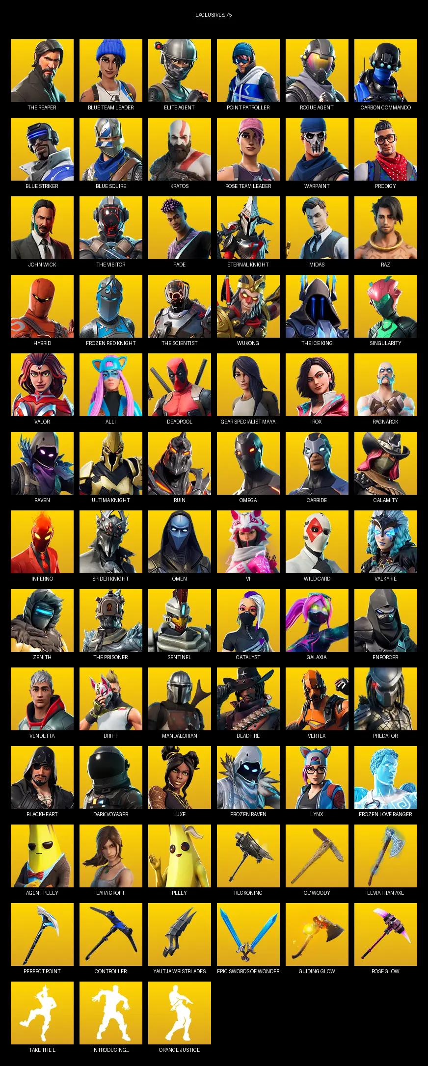 [PC/PSN/XBOX] | 148 skins | Leviathan Axe | Take The L | OG STW | The Reaper | Elite Agent | Blue Squire | Omega | Lara Croft | #MOI5740