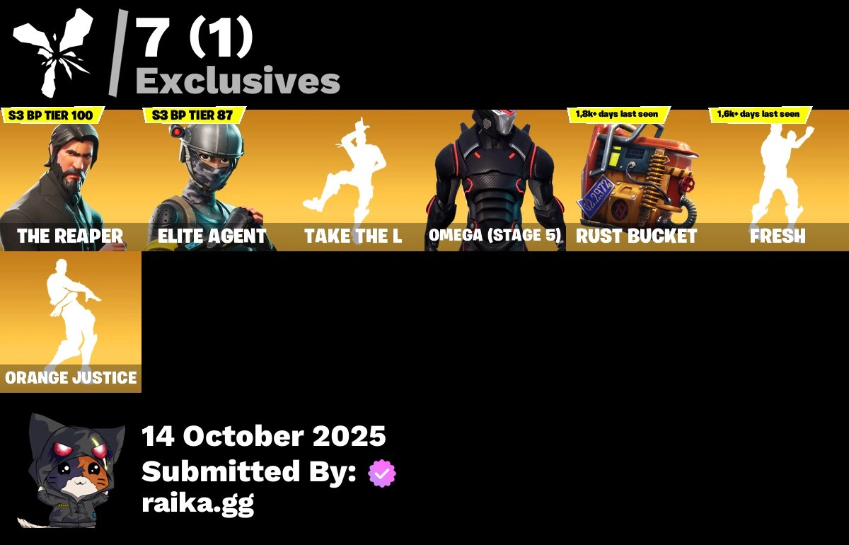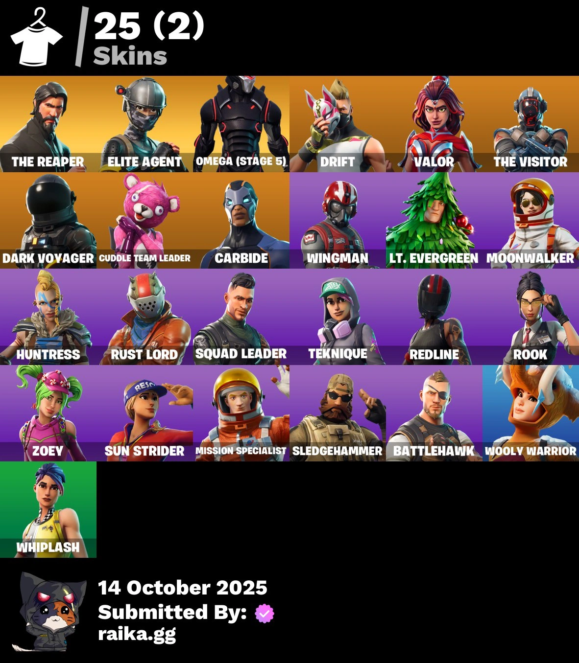 [PC/PSN/XBOX] 25 skins | Take The L | The Reaper | Elite Agent | Omega (stage 5) | Drift | Valor | The Visitor | Dark Voyager | Cuddle Team Leader | Carbide | Wingman | 50 VB