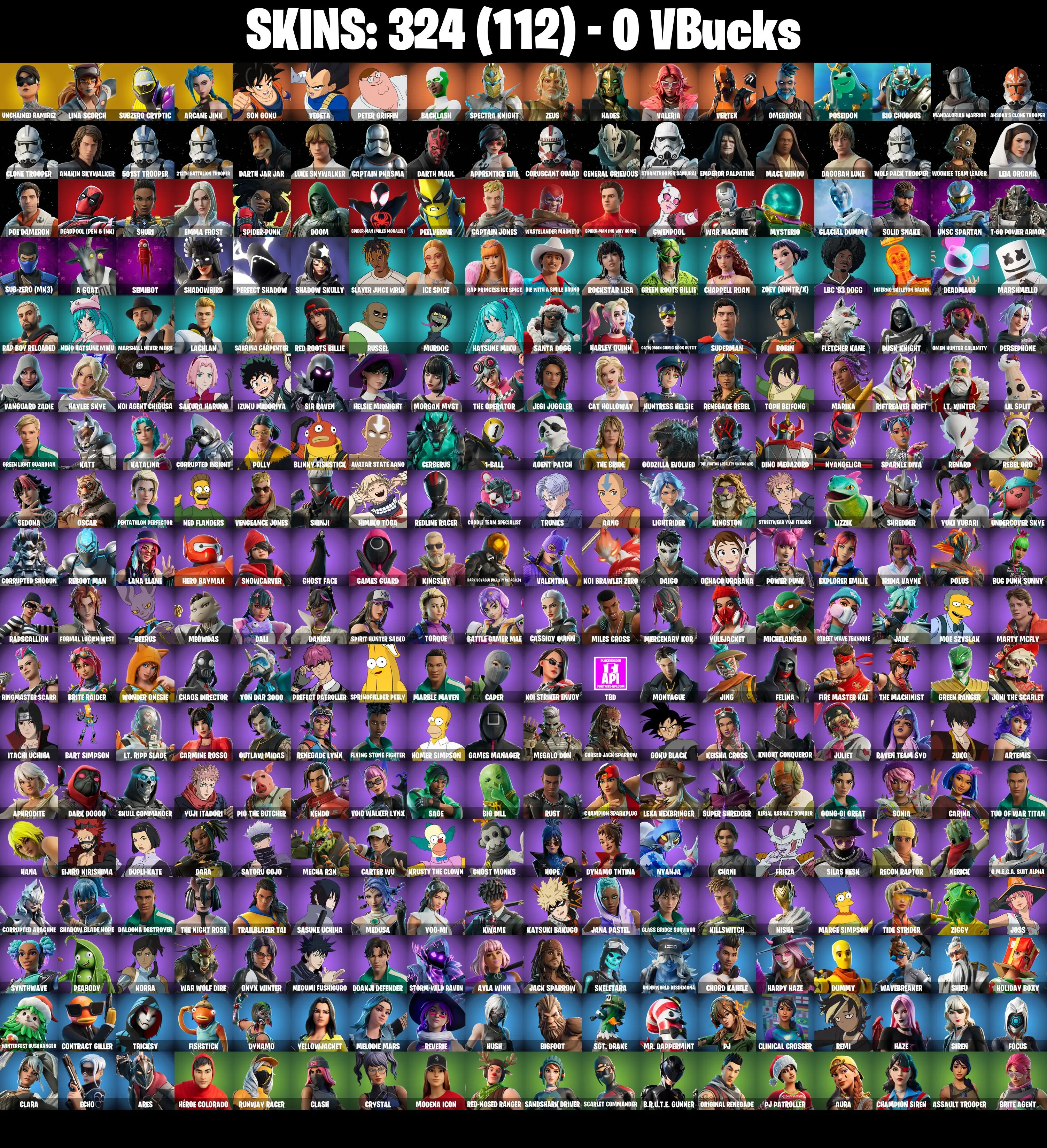 (PC/PSN/XBOX) 324 SKINS / Unchained Ramirez | Lina Scorch | Subzero Cryptic | Arcane Jinx | Son Goku | Vegeta | Peter Griffin | 0 V-Buc PARENTAL CONTROL