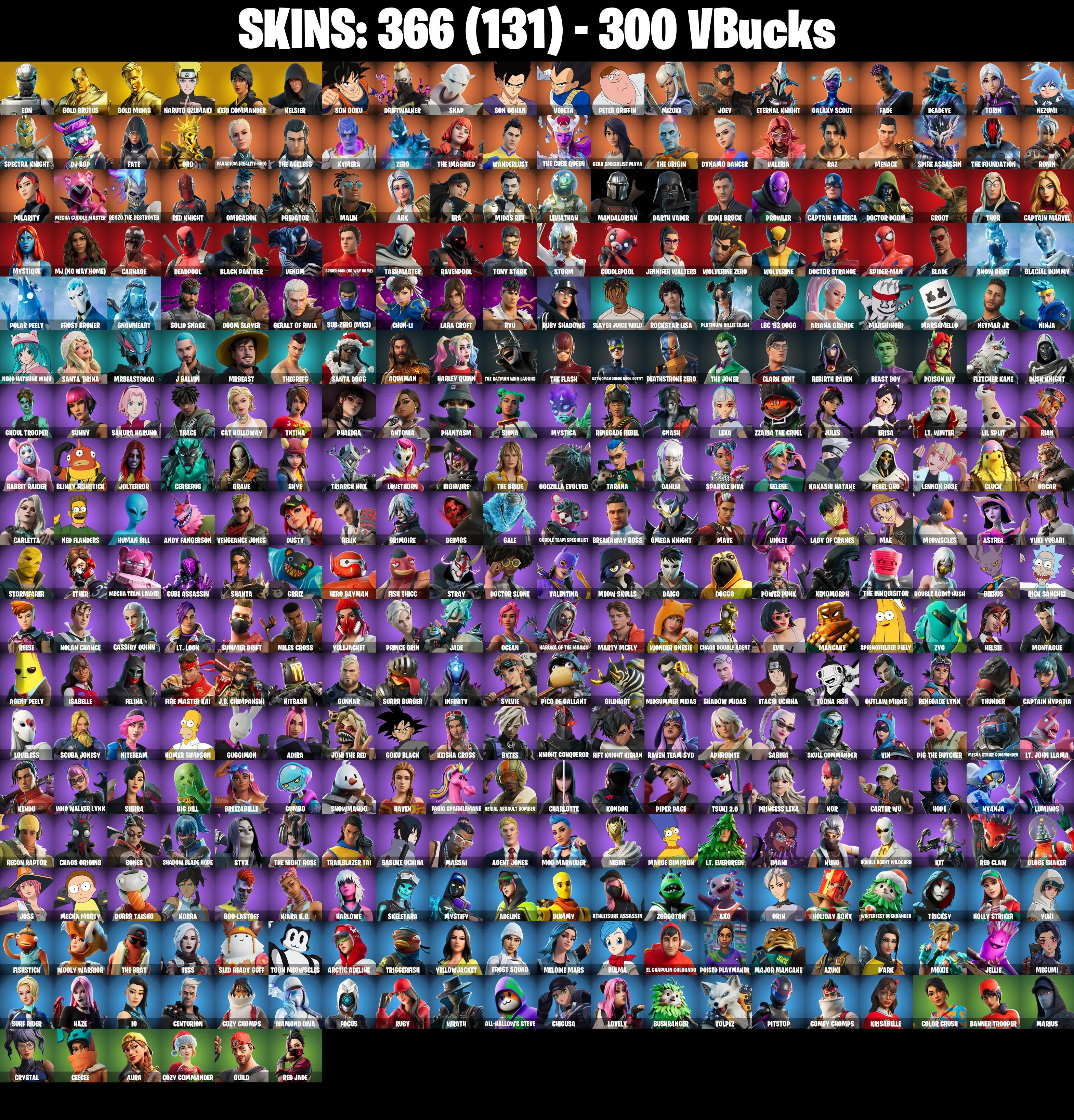 (PC/PSN/XBOX) 366 SKINS / Eon | Gold Brutus | Gold Midas | Naruto Uzumaki | Keri Commander | Kelsier | Son Goku | Driftwalker | 300 V-Buc PARENTAL CONTROL