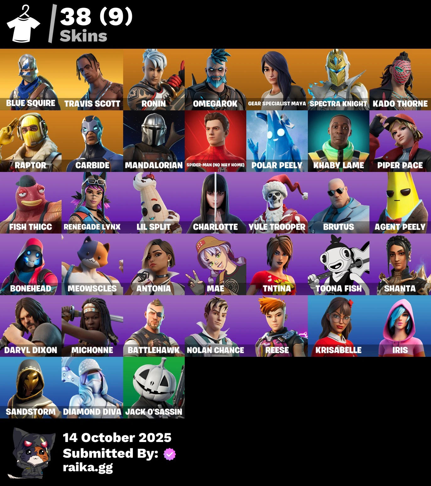 [PC/PSN/XBOX] 38 skins | Blue Squire | Travis Scott | Ronin | Omegarok | Gear Specialist Maya | Spectra Knight | Kado Thorne | Raptor | Carbide | Mandalorian | 300 VB