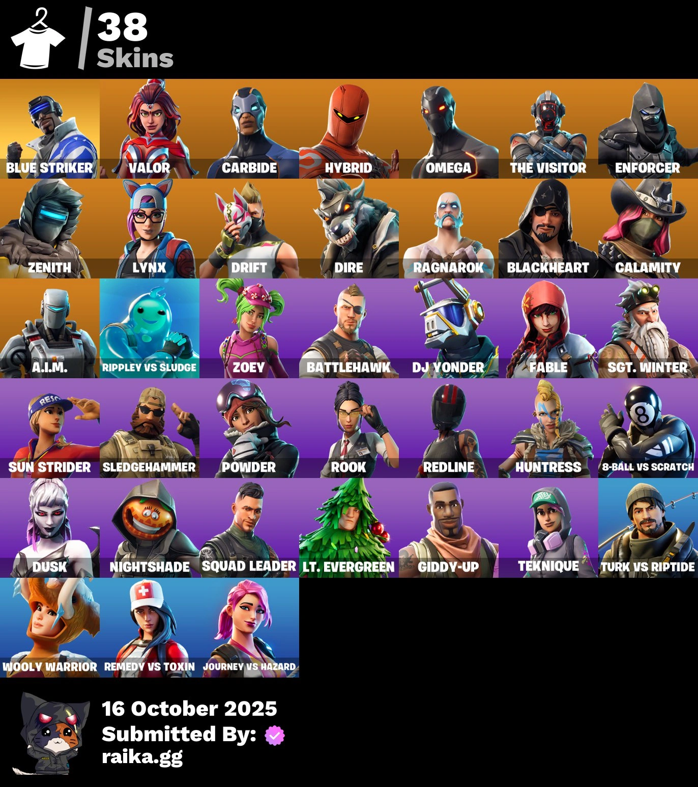 [PC/PSN/XBOX] 38 skins | Blue Striker | Valor | Carbide | Hybrid | Omega | The Visitor | Enforcer | Zenith | Lynx | Drift | Dire | Ragnarok | Blackheart | 1100 VB