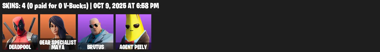 [PC/PSN/XBOX] | 4 skins | Deadpool | Gear Specialist Maya | Brutus | Agent Peely | Hack & Smash | TNTeeth | Default Pickaxe | S4G