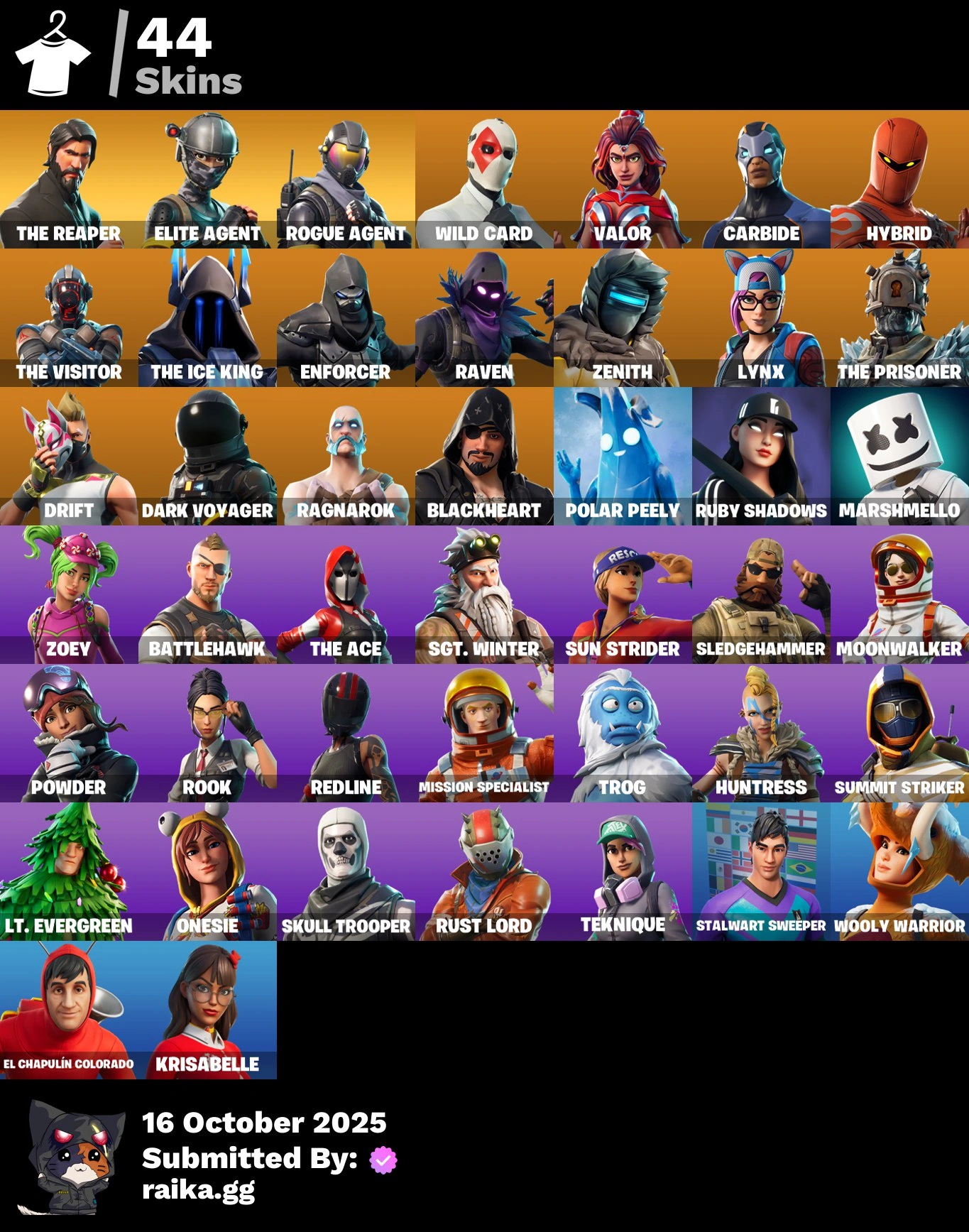 [PC/PSN/XBOX] 44 skins | The Reaper | Elite Agent | Rogue Agent | Wild Card | Valor | Carbide | Hybrid | The Visitor | The Ice King | Enforcer | Raven | 700 VB