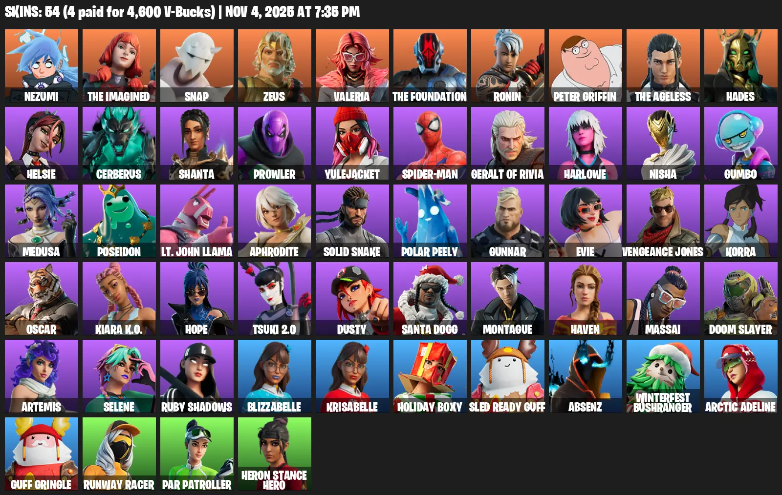 π¨ [PC/PSN/XBOX] π 54 skins | Zeus , The Foundation , The Ageless , Hades , Geralt of Rivia , Prowler , Spider-Man , Doom Slayer , Solid Snake | π 2100 VBUCKS | βοΈ Changeable Email Now