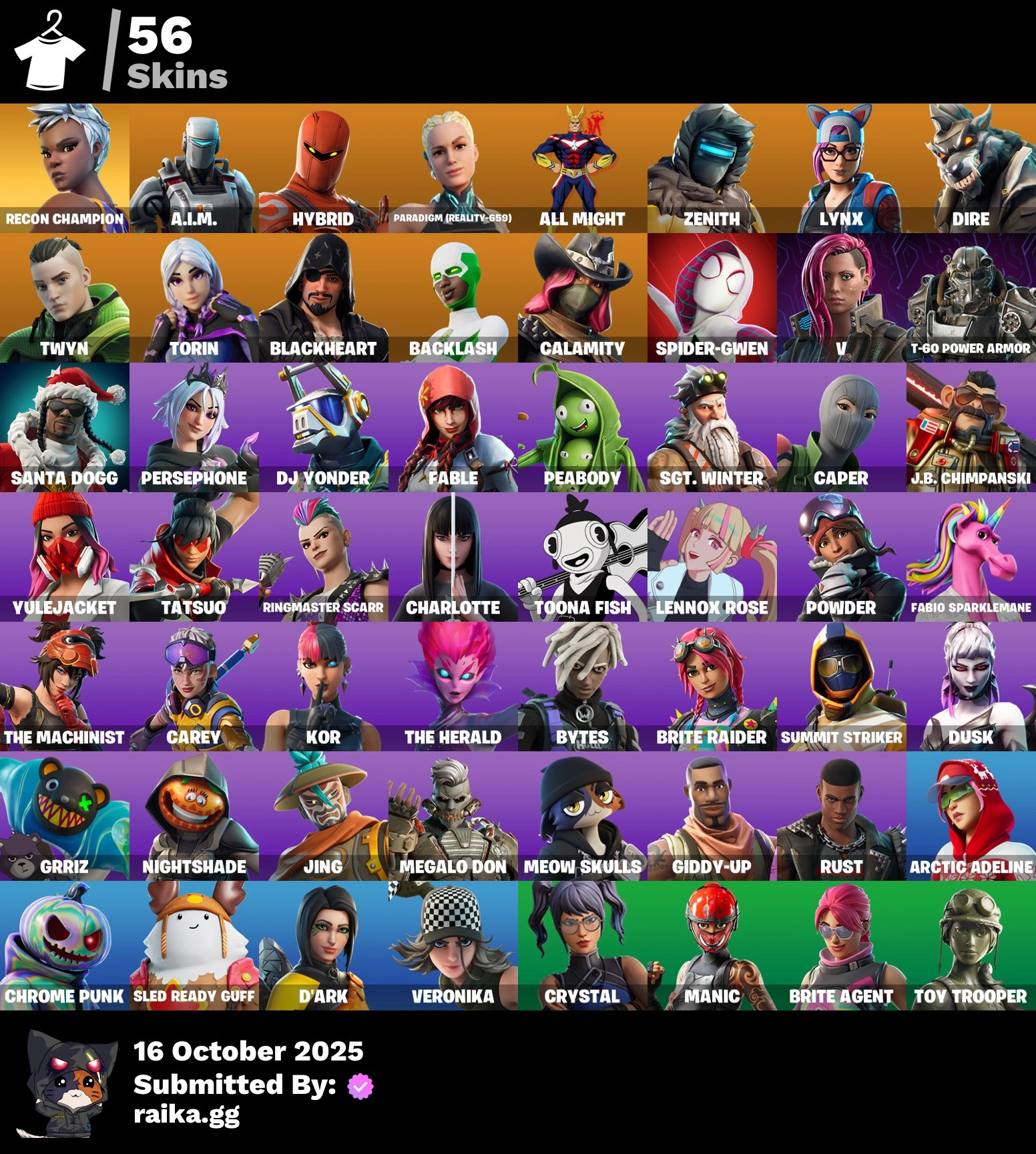 [PC/PSN/XBOX] 56 skins | Recon Champion | A.I.M. | Hybrid | Paradigm (Reality-659) | All Might | Zenith | Lynx | Dire | Twyn | Torin | Blackheart | Backlash | 0 VB