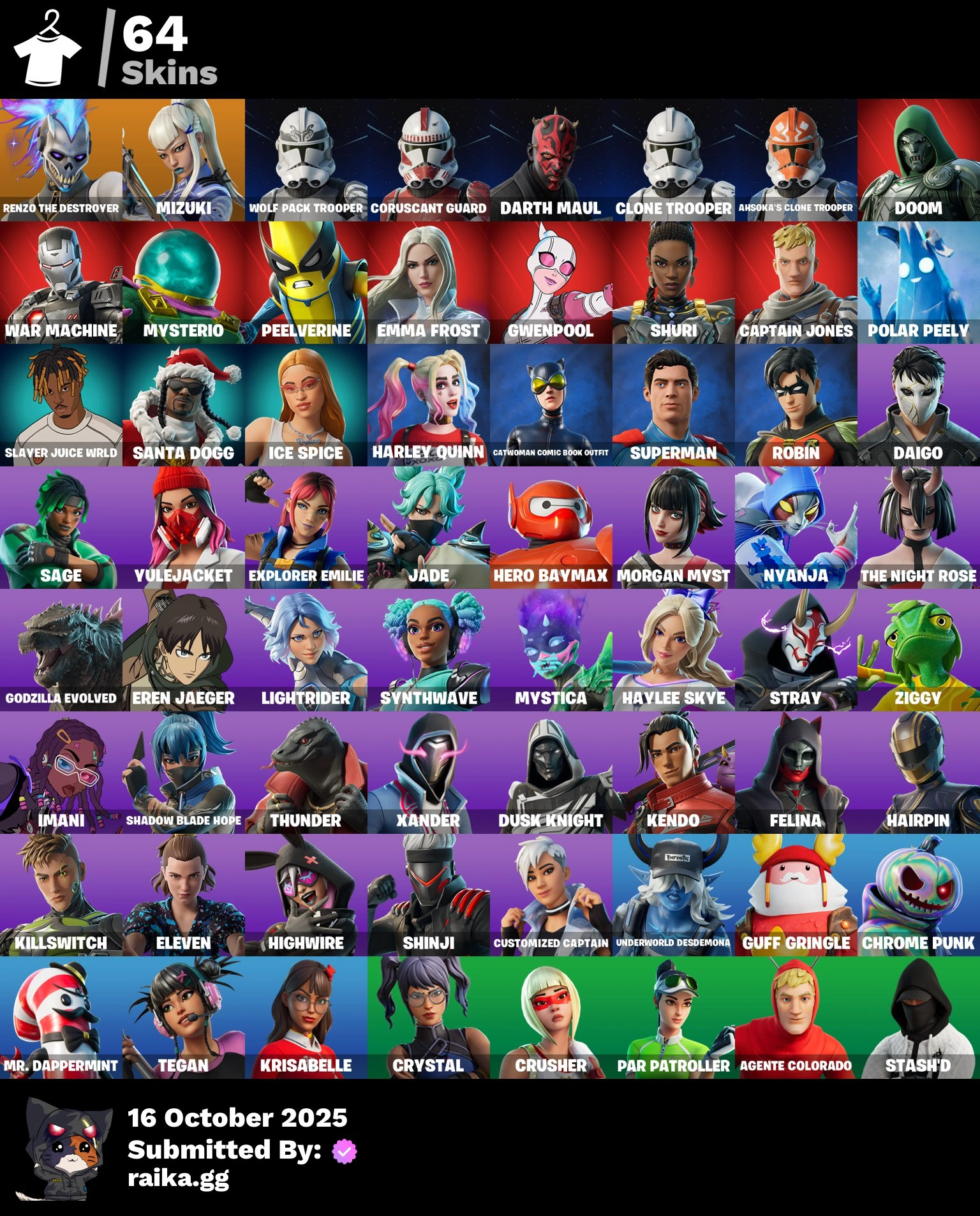 [PC/PSN/XBOX] 64 skins | Renzo the Destroyer | Mizuki | Wolf Pack Trooper | Coruscant Guard | Darth Maul | Clone Trooper | Ahsoka's Clone Trooper | Doom | 200 VB